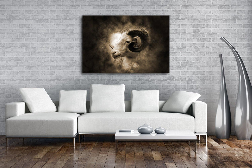 deyoli Bezaubernder Widderkopf Format: 60x40 Effekt: Sepia als Leinwandbild, Motiv fertig gerahmt au