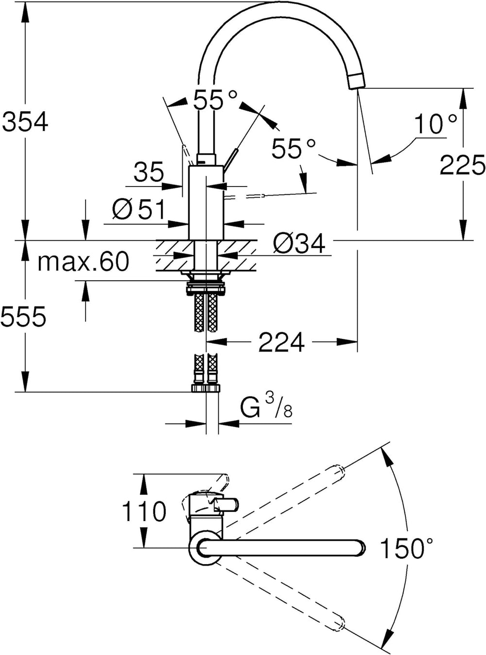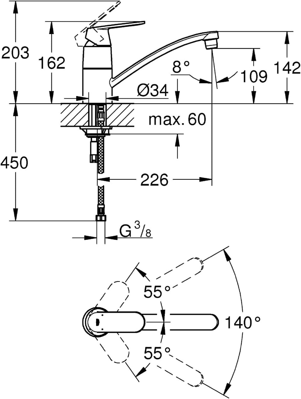 GROHE Eurosmart Cosmopolitan - Einhand-Spültischbatterie (wassersparend, 5,7 l/min, Schwenkbereich w