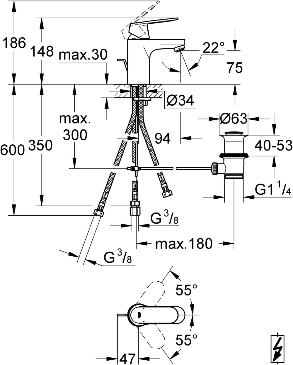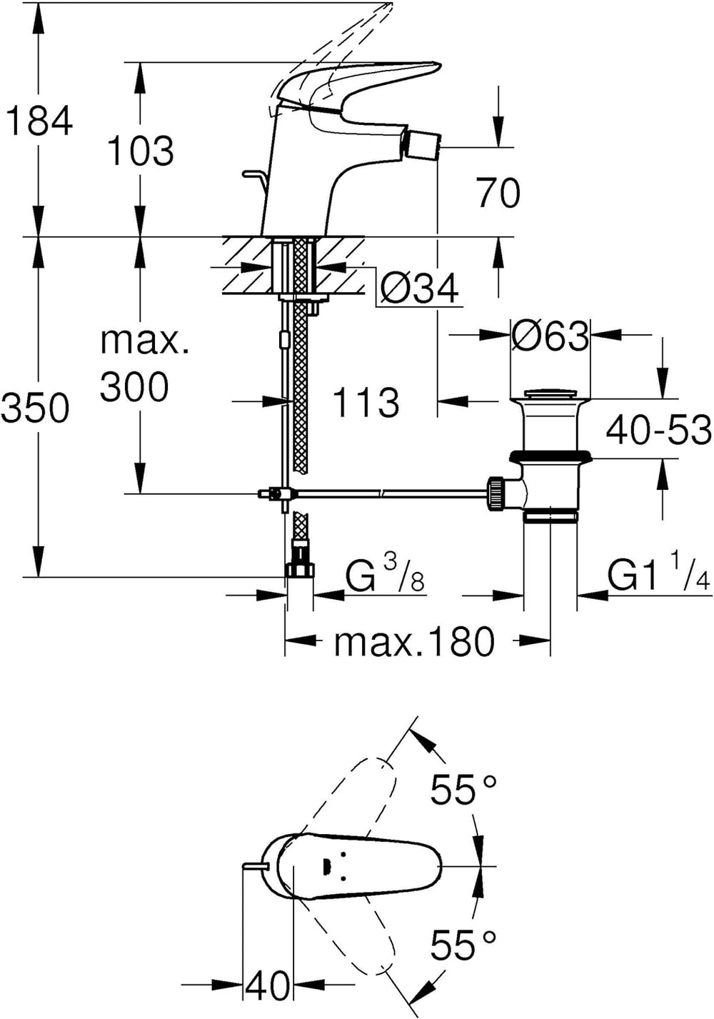 Grohe Eurostyle 2015 Solid EHM Bidet S-Size, Grau Zugstangen-Ablaufgarnitur (massiver Hebel) Grau, Z
