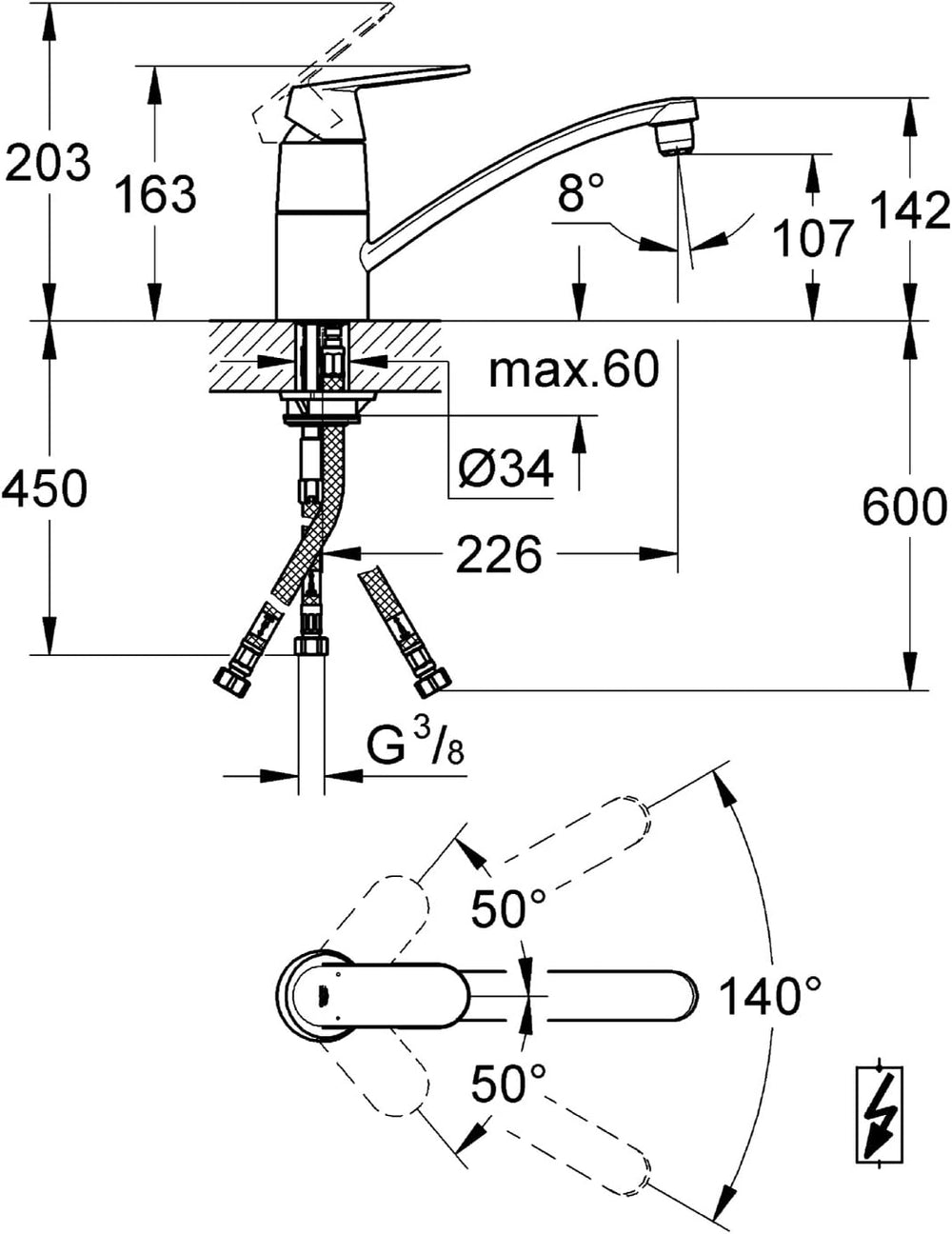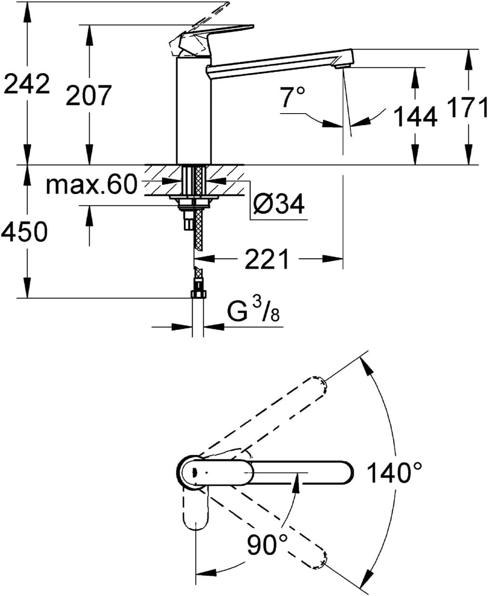 GROHE Eurosmart Cosmopolitan Küchenarmatur, niedriger Auslauf, Niederdruck 31179000 flacher Auslauf