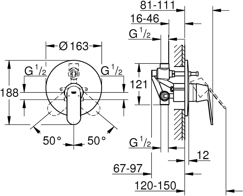 Grohe Eurosmart Einhand-Spültischarmatur, Wandmontage, Ausladung 150 mm, 31509002 Chrom Wandmontage