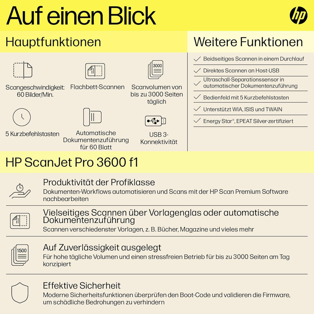 HP Kompakter Desktop Duplex USB Mobiler Dokumenten- & Foto-Scanner mit Auto-Feed Tray für tragbares