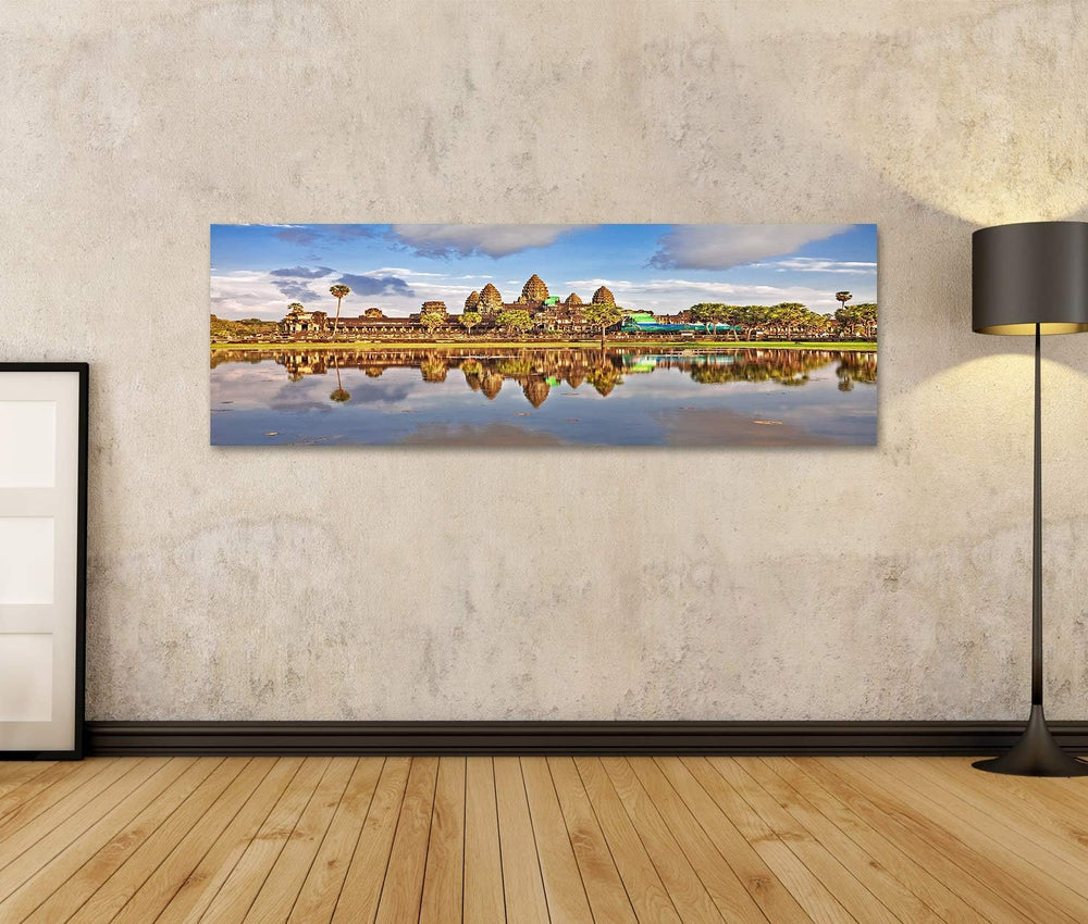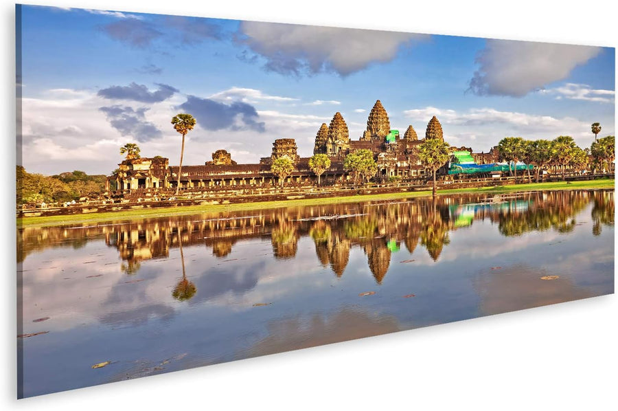 islandburner Bild auf Leinwand Angkor Wat Tempel Bilder Wandbilder Poster Leinwand 120x40cm - Panora
