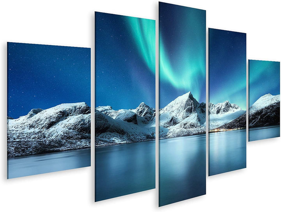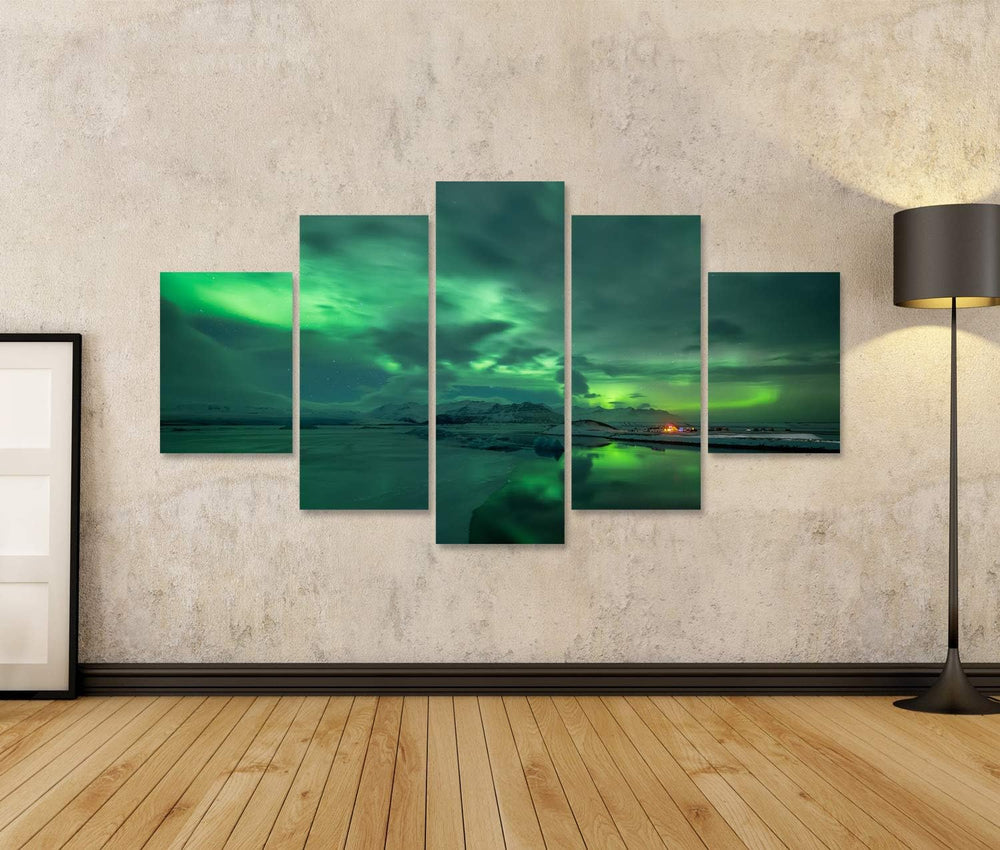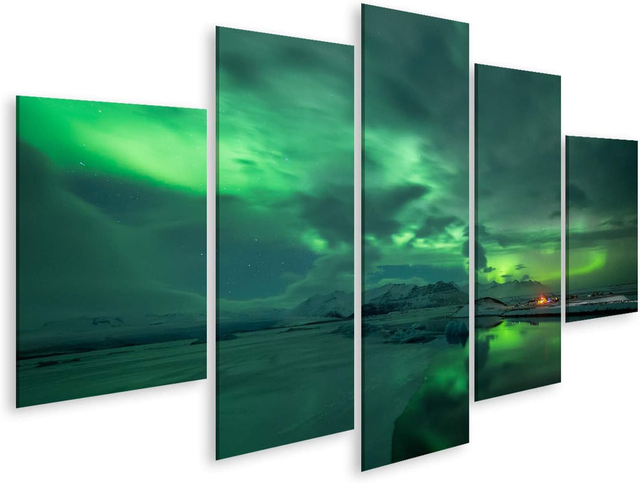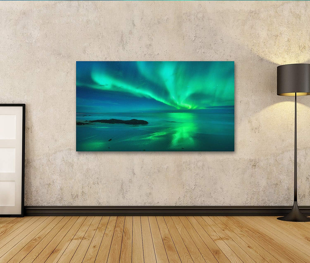 islandburner Bild auf Leinwand Aurora Borealis Nordlichter Reflektierend Bilder Wandbilder Poster, 1