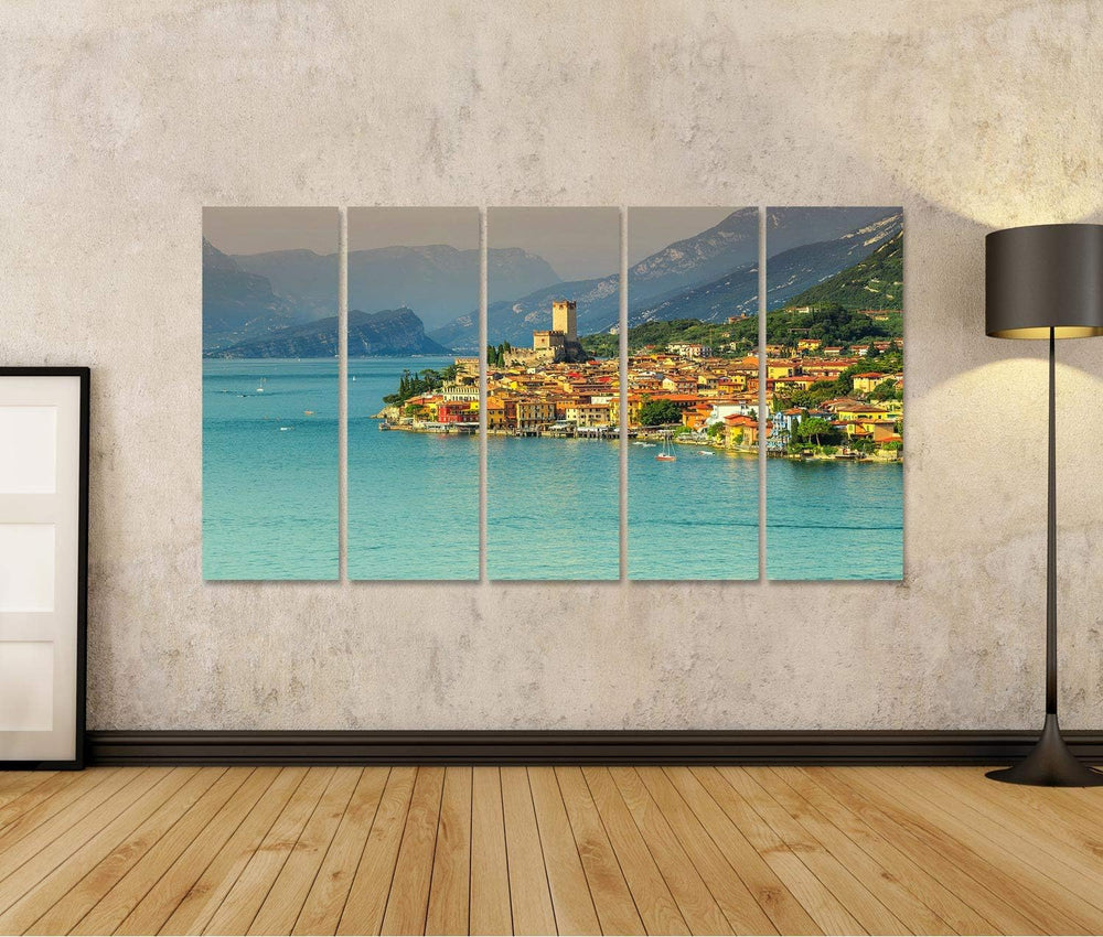 islandburner Bild auf Leinwand Atemberaubendes Malcesine Touristen Resort Hohe Berge Gardasee Italie