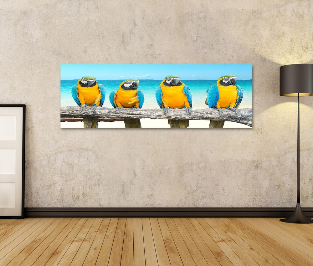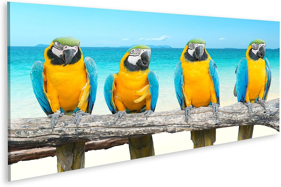islandburner Bild auf Leinwand Ara Papagei Auf Ast Am Tropischen Schönen Strand Und Meer Bilder Wand