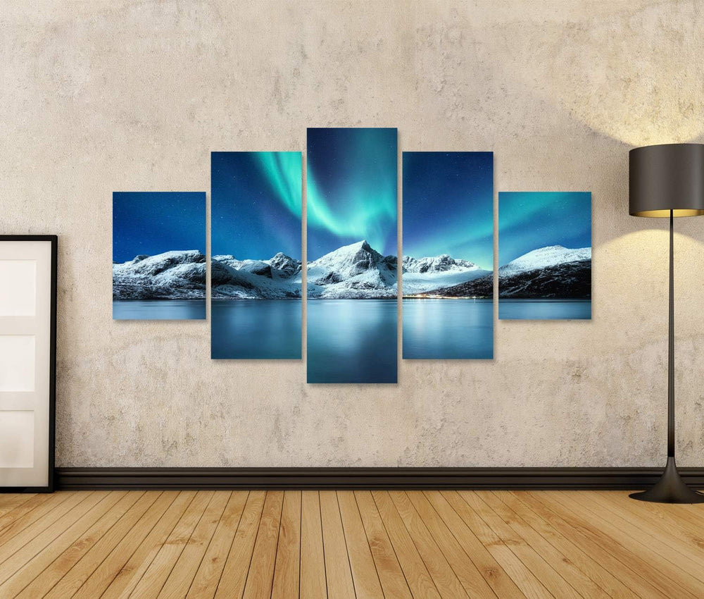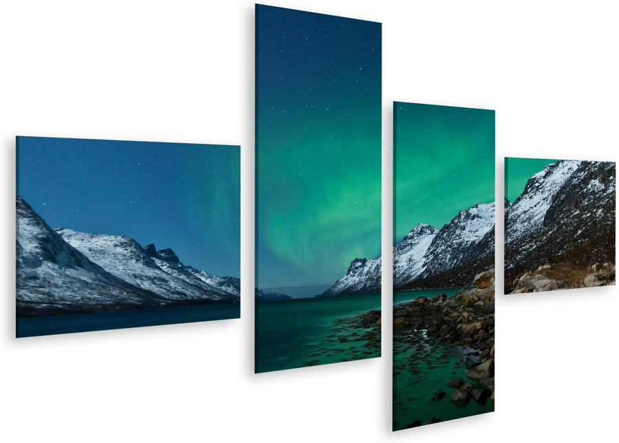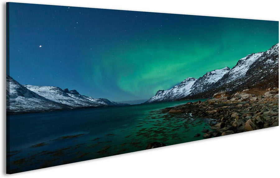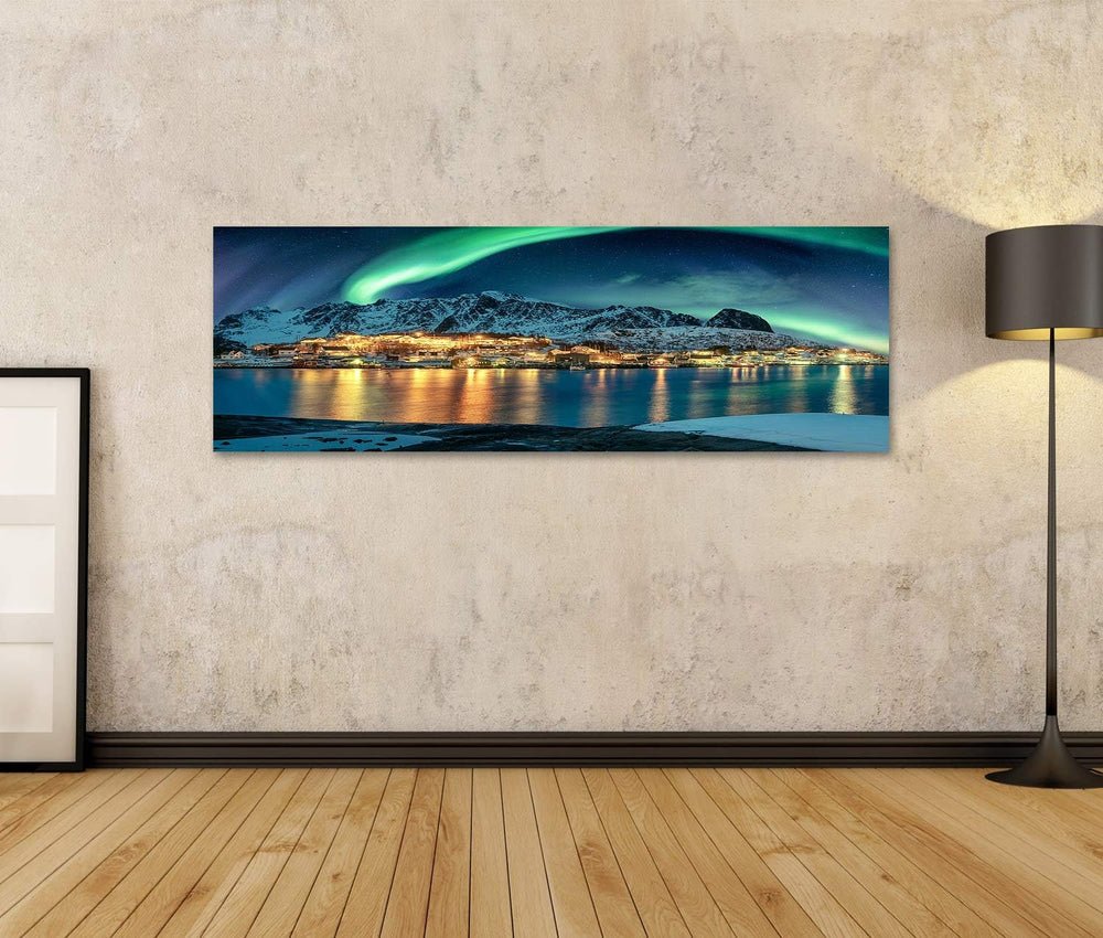 islandburner Bild auf Leinwand Aurora Borealis Nordlichter Reflexion Mit Fjorden Bilder Wandbilder P