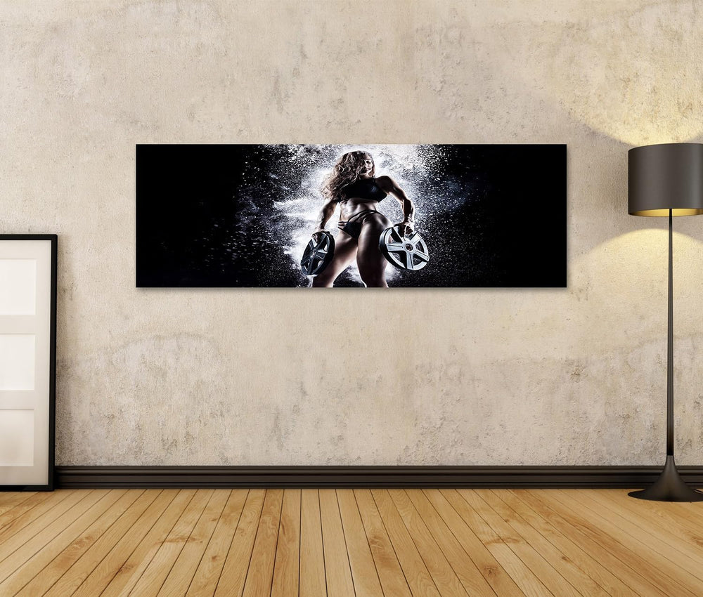 islandburner Bild auf Leinwand Athlete Posing Studio Gewichte In Ihren Händen Konzept Sport Bodybuil