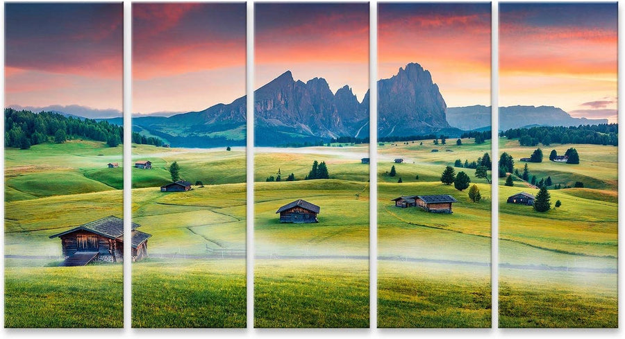 islandburner Bild auf Leinwand Aufregende Morgenstimmung Compaccio Dorf Seiser Alm Alpe Di Siusi Sta