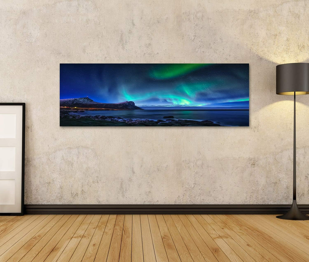 islandburner Bild auf Leinwand Aurora Borealis Lofoten Inseln Norwegen Bilder Wandbilder Poster Lein