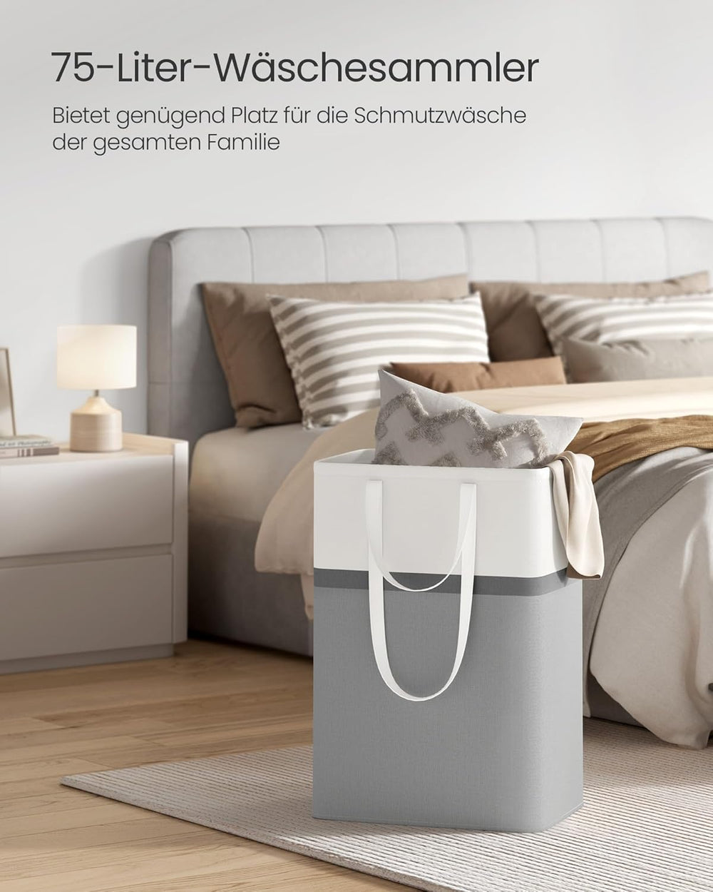 SONGMICS Wäschekorb 2er Set, 75 L Wäschesammler faltbar, mit kurzen und langen Griffen, leicht zu tr