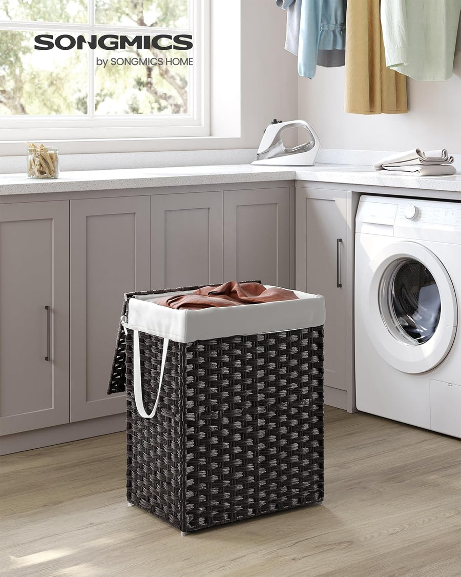 SONGMICS Wäschekorb schmal, Wäschesammler 55 L, Wäschebox aus synthetischem Rattan, mit Deckel und G