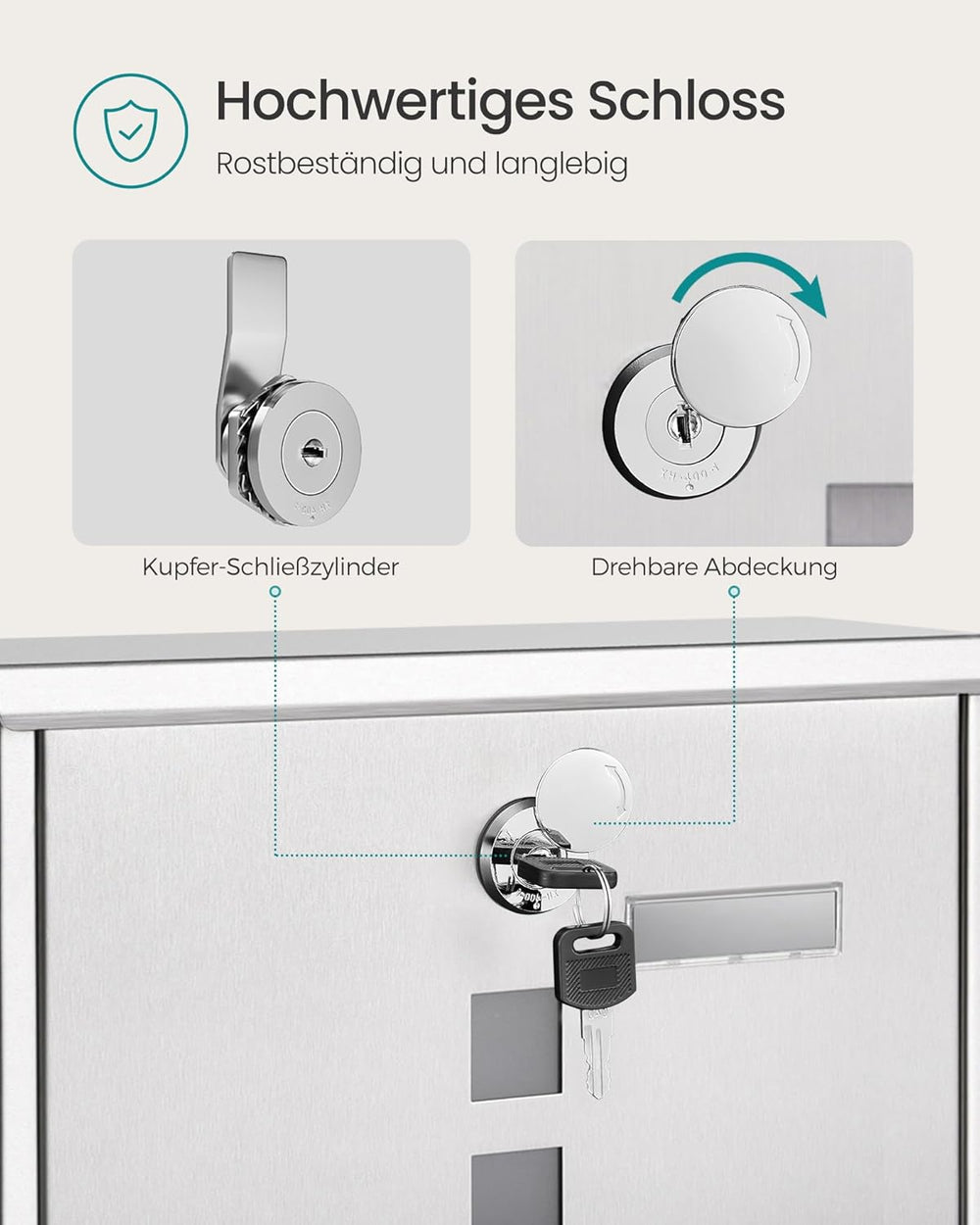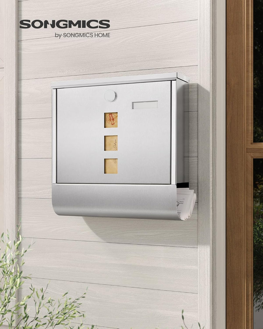SONGMICS XXL Briefkasten, Edelstahl mit Zeitungsfach, Schloss mit Kupfer-Schliesszylinder und drehba