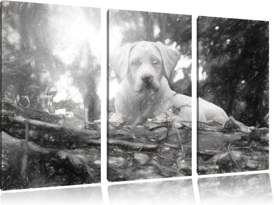 Pixxprint Hund im Wald bei Sonneuntergang als Leinwandbild/Grösse: 3 Teilig (120x80 cm) cm/Wandbild/