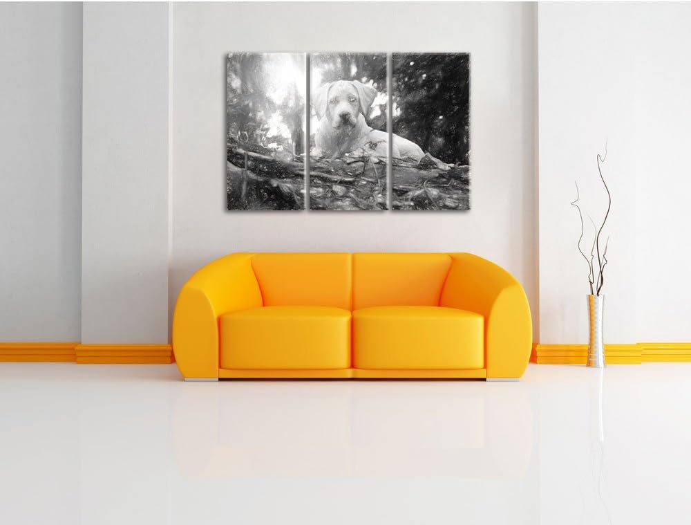 Pixxprint Hund im Wald bei Sonneuntergang / 3-Teilig/Gesamtmass 120cm Leinwandbild bespannt auf Holz