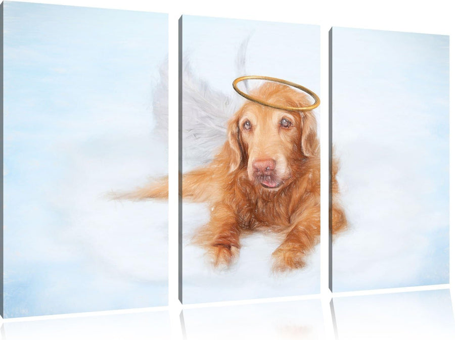 Pixxprint Hundeengel im Himmel als Leinwandbild/Grösse: 3 Teilig (120x80 cm) cm/Wandbild/Kunstdruck/
