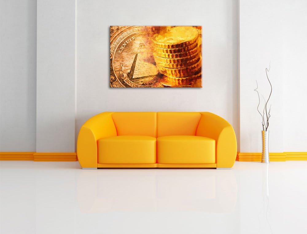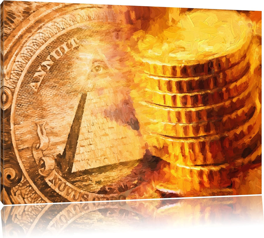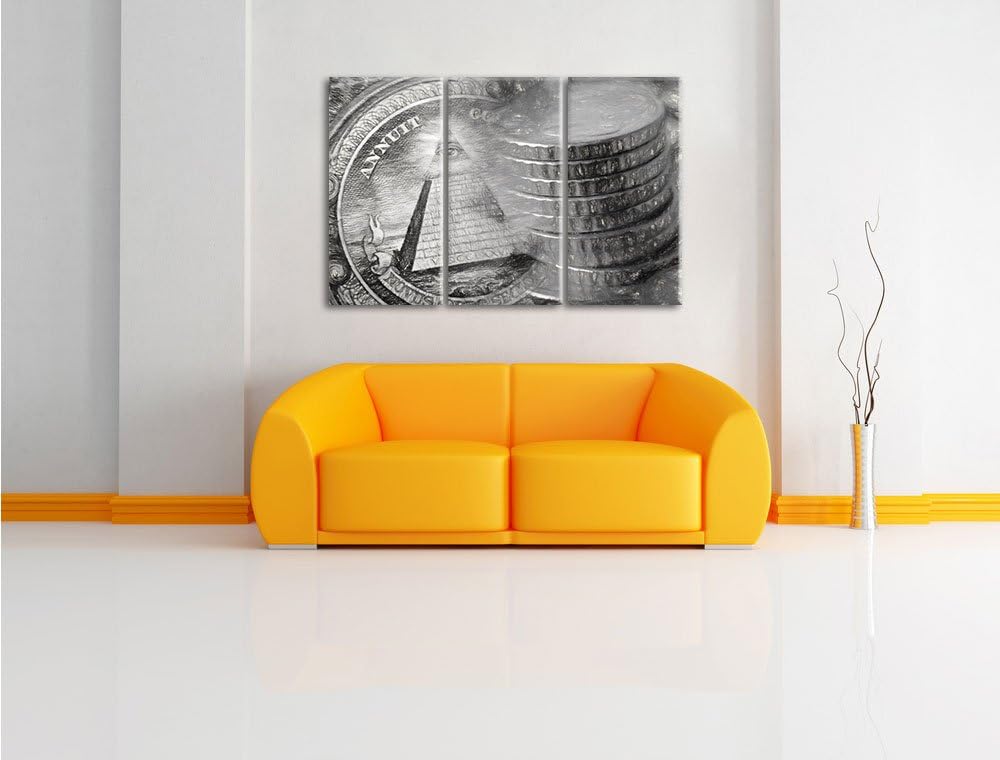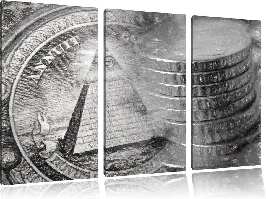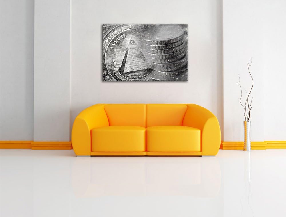 Pixxprint Illuminaten-Pyramide Dollar schwarz/weiss, Format: 70x70 auf Leinwand, 70x70