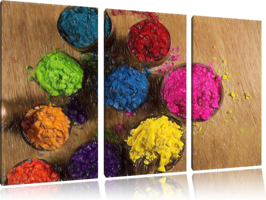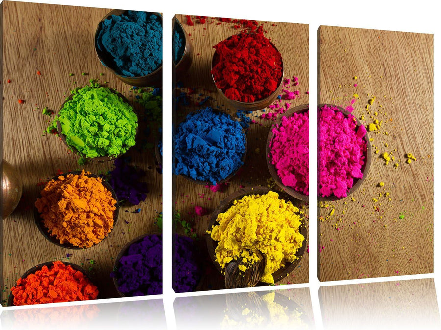 Pixxprint Indisches Farbpulver als Leinwandbild | Grösse: 3 Teilig (120x80) | Wandbild| Kunstdruck |