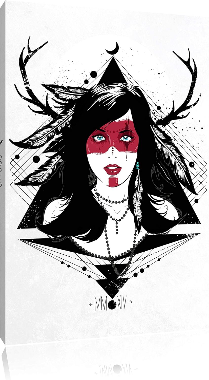 Pixxprint Indian Girl White Bild auf Leinwand, XXL riesige Bilder fertig gerahmt mit Keilrahmen, Kun