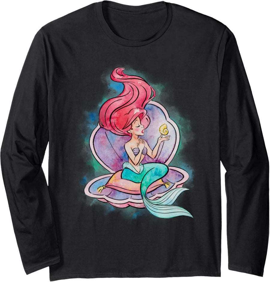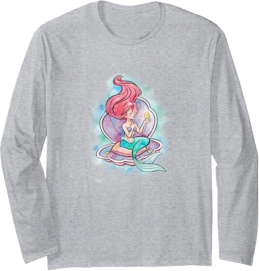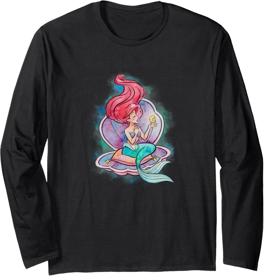 Disney Little Mermaid Ariel Clam Shell Watercolor Portrait Langarmshirt