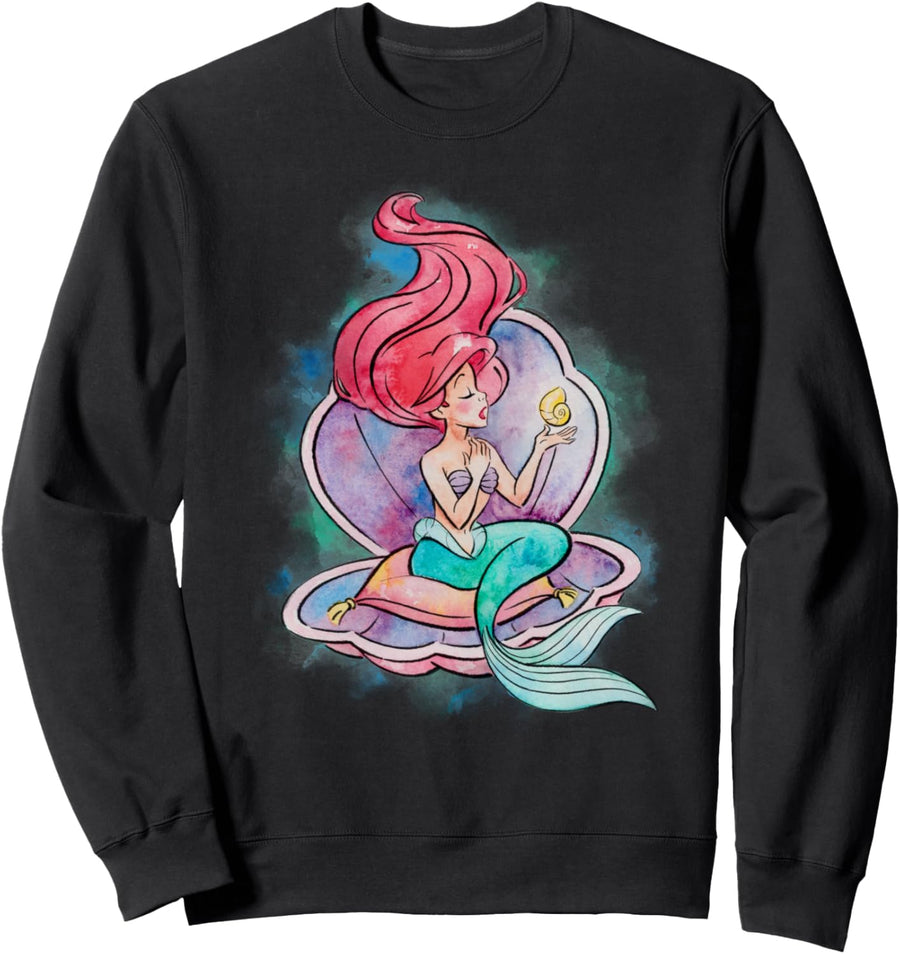 Disney Little Mermaid Ariel In Shell Watercolor Sweatshirt