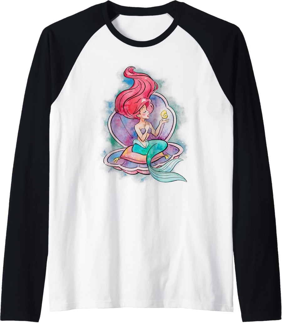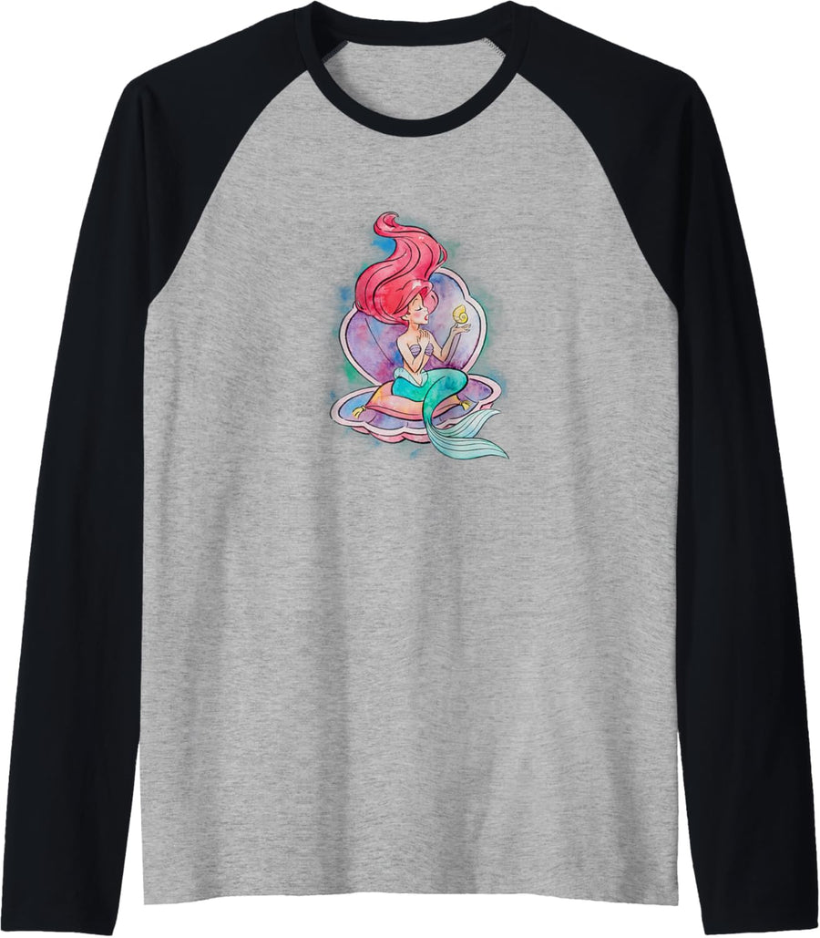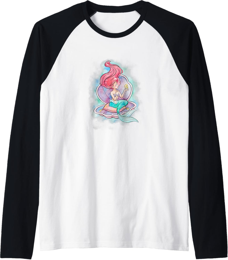 Disney Little Mermaid Ariel In Shell Watercolor Raglan