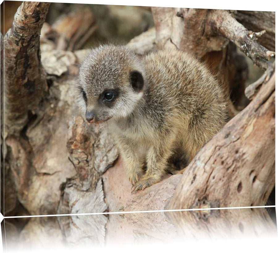 Pixxprint junges Erdmännchen auf Baum als Leinwandbild/Grösse: 100x70 / Wandbild/Kunstdruck/fertig b