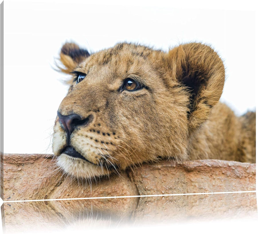 Pixxprint junger Löwe schläft als Leinwandbild/Grösse: 100x70 / Wandbild/Kunstdruck/fertig bespannt,