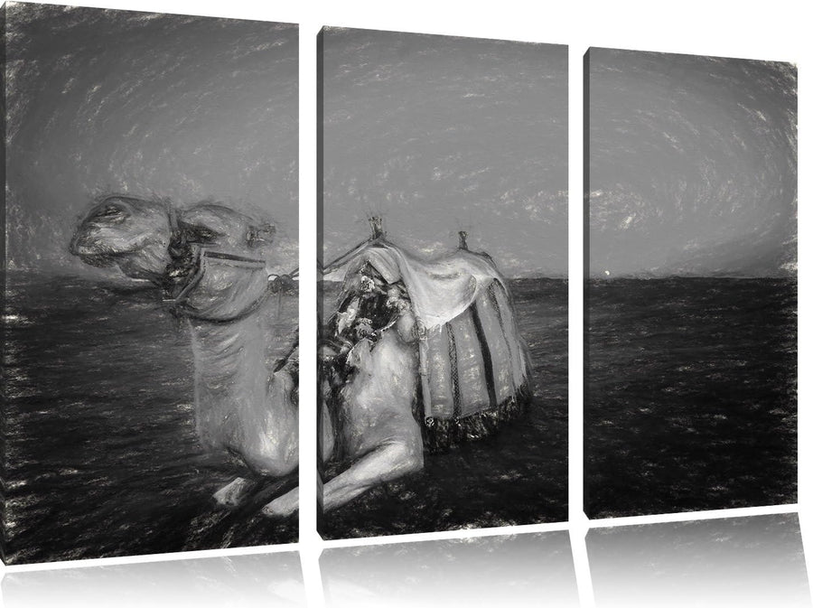 Pixxprint Kamel bei Sonnenuntergang in Ägypten Kunst Kohle Effekt 3-Teiler Leinwandbild 120x80 Bild