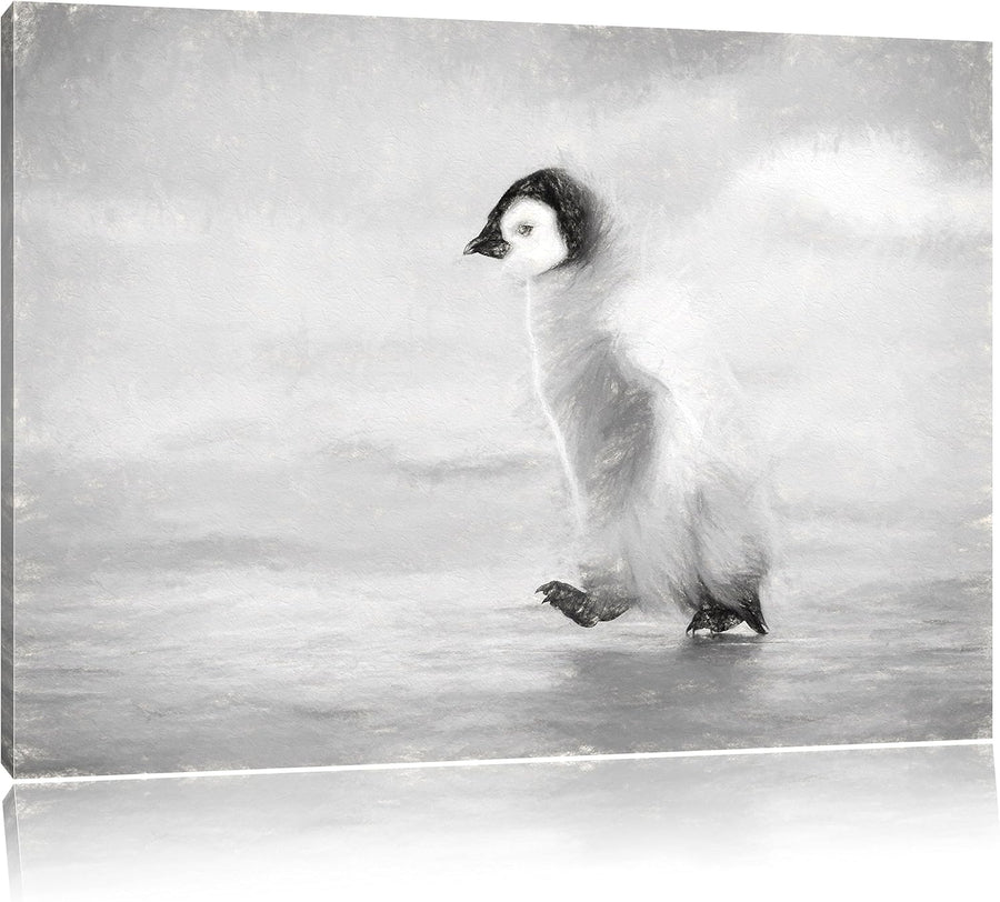 Pixxprint Kaiserpinguinkücken als Leinwandbild/Grösse: 100x70 cm/Wandbild/Kunstdruck/fertig bespannt