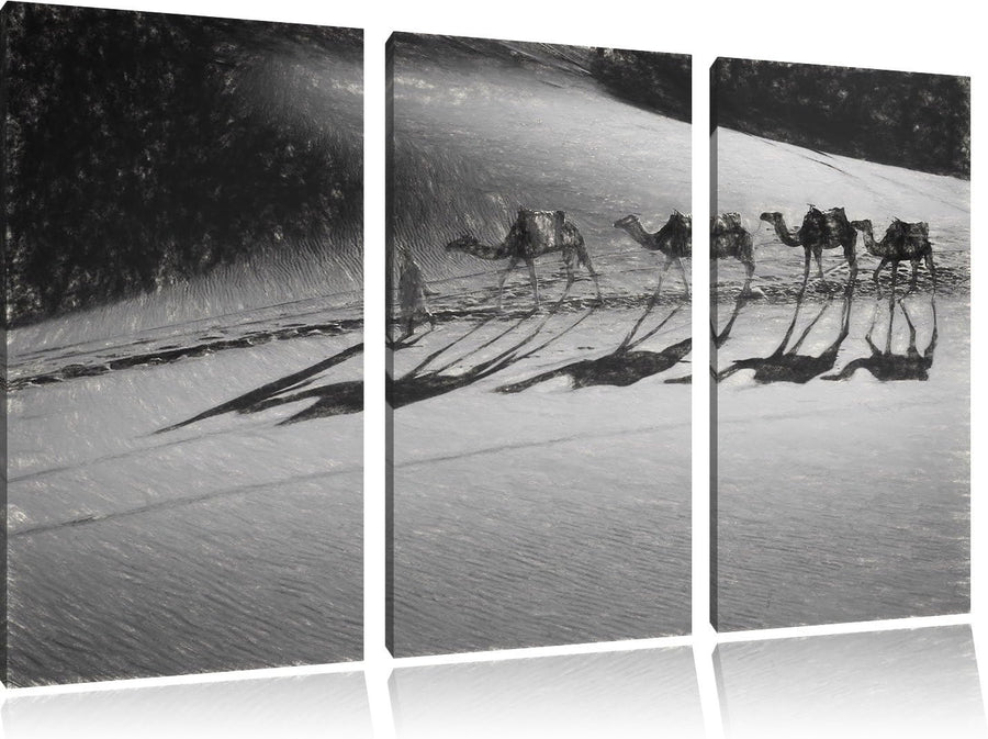 Pixxprint Kamelkarawane in Wüste als Leinwandbild/Grösse: 3 Teilig (120x80) cm/Wandbild/Kunstdruck/f