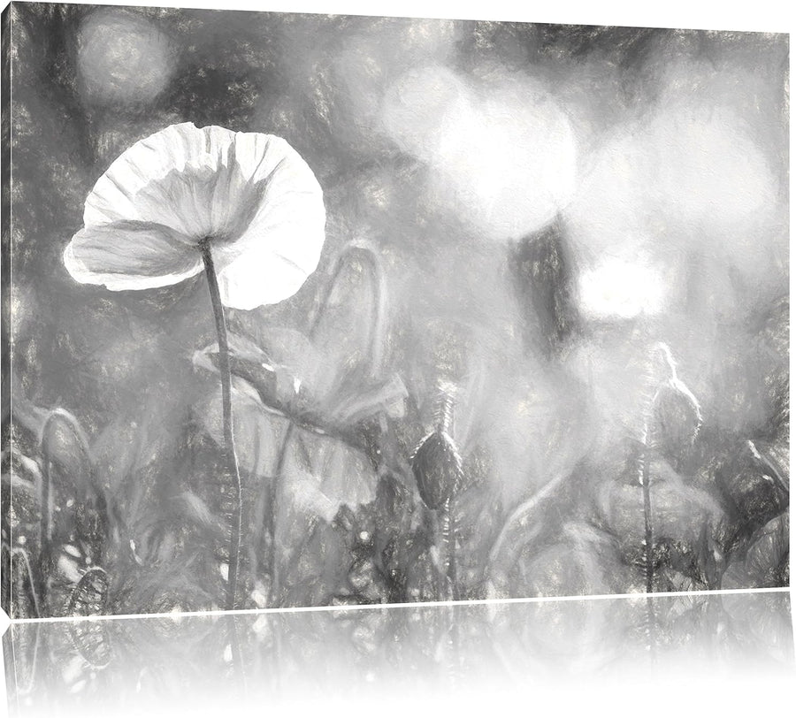 Pixxprint Kalifornischer Mohn im Frühling Kunst Kohle Effekt, Format: 100x70 auf Leinwand, 100x70