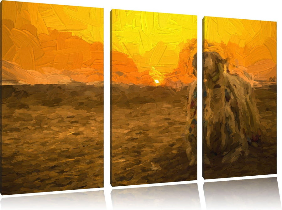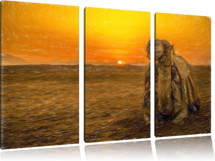 Pixxprint Kamel bei Sonnenuntergang in Ägypten Kunst Pinsel Effekt 3-Teiler Leinwandbild 120x80 Bild