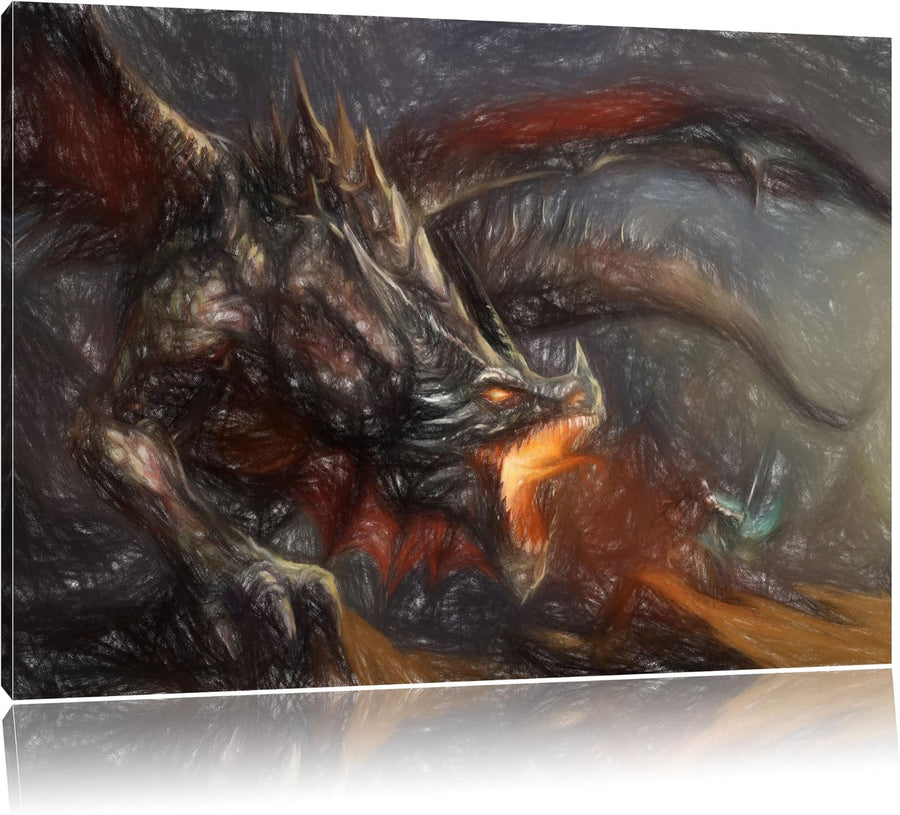 Pixxprint Kampf zwischen Mensch und Drache als Leinwandbild/Grösse: 100x70 cm/Wandbild/Kunstdruck/fe