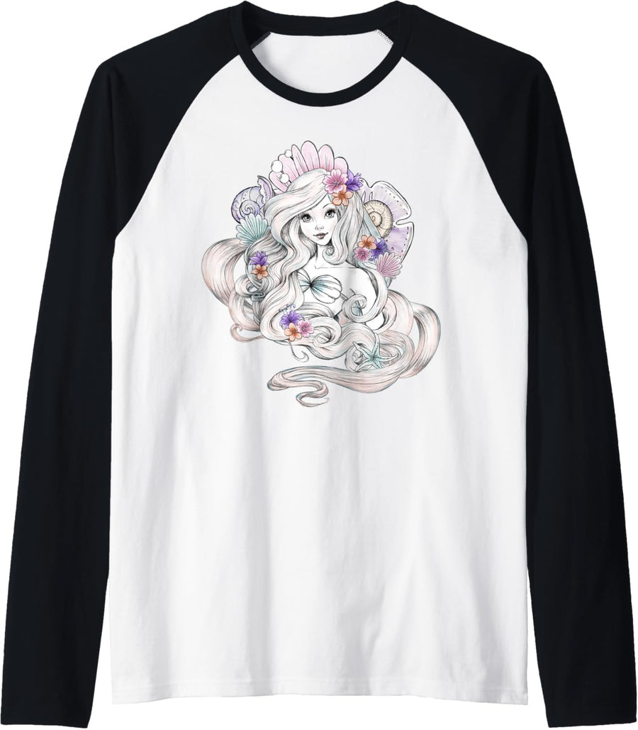 Disney Little Mermaid Ariel Watercolor Floral Shell Raglan