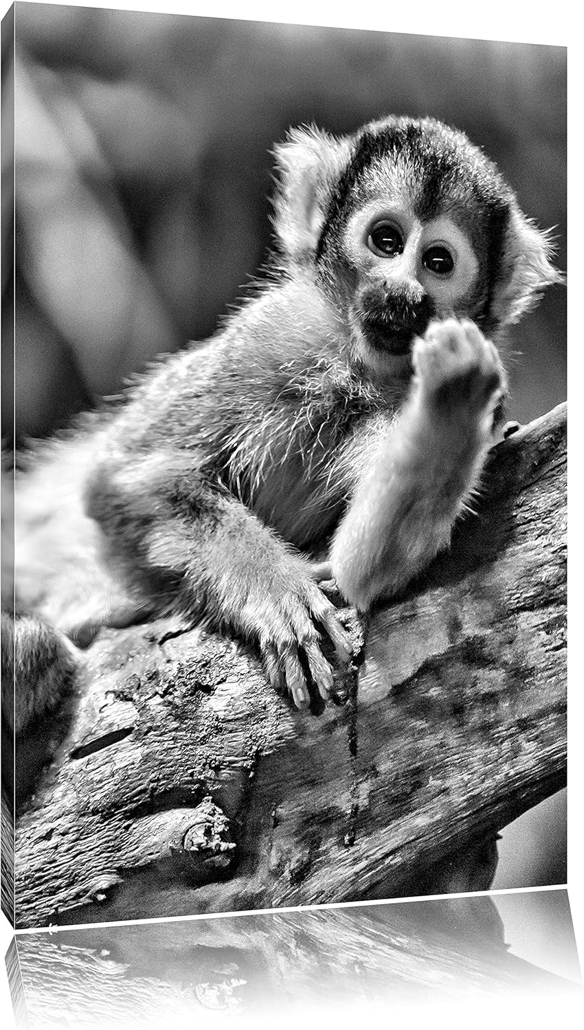 Pixxprint Kapuzineräffchen / 100x70cm Leinwandbild bespannt auf Holzrahmen/Wandbild Kunstdruck Dekor