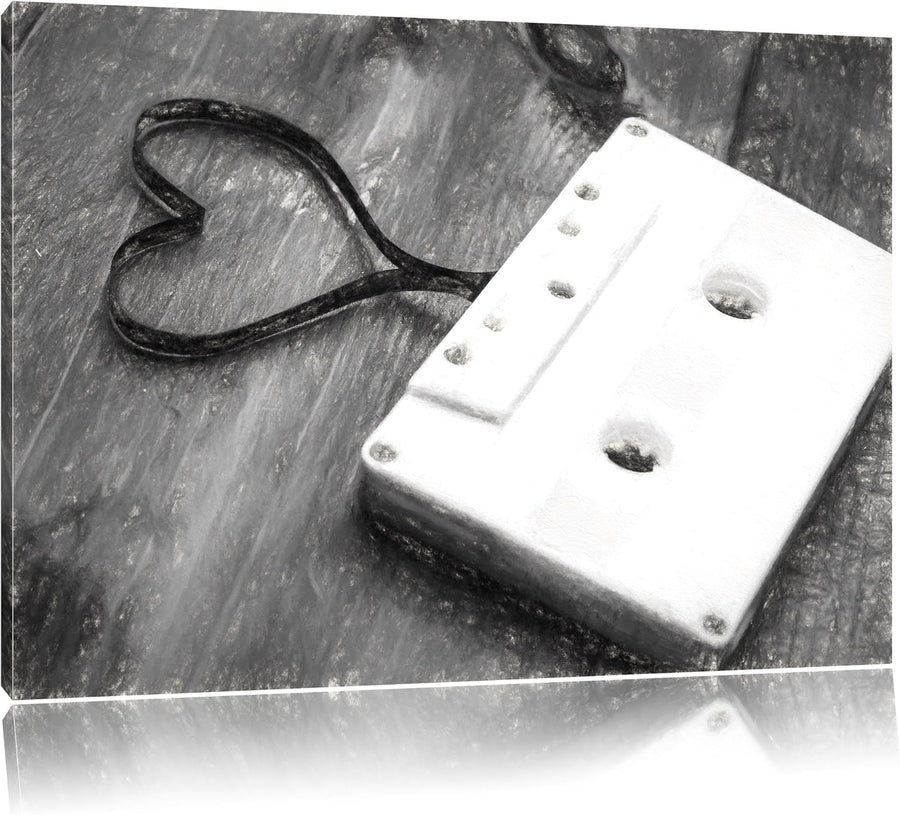 Pixxprint Kasette mit Herz / 100x70cm Leinwandbild bespannt auf Holzrahmen/Wandbild Kunstdruck Dekor