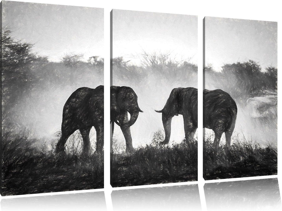 Pixxprint kämpfende Elefanten Kunst als Leinwandbild/Grösse: 3 Teilig (120x80 cm) cm/Wandbild/Kunstd