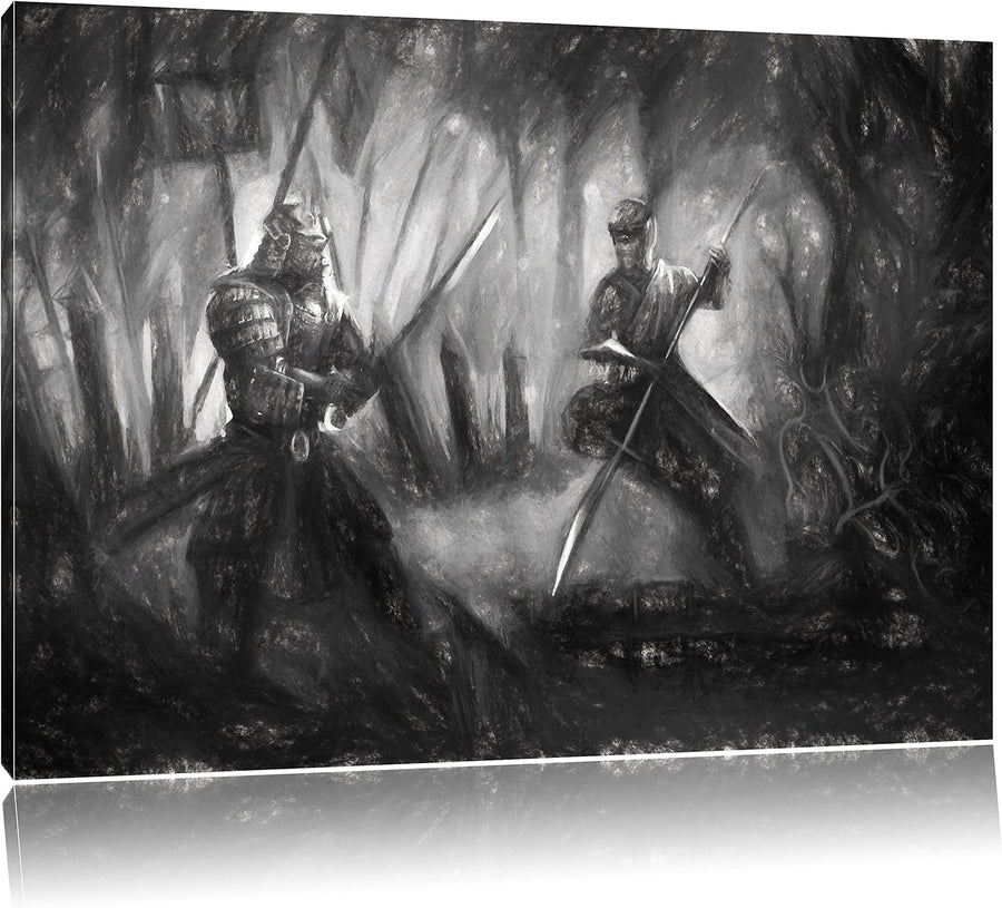 Pixxprint Kampf zwischen Samurai und Ninja als Leinwandbild/Grösse: 100x70 / Wandbild/Kunstdruck/fer