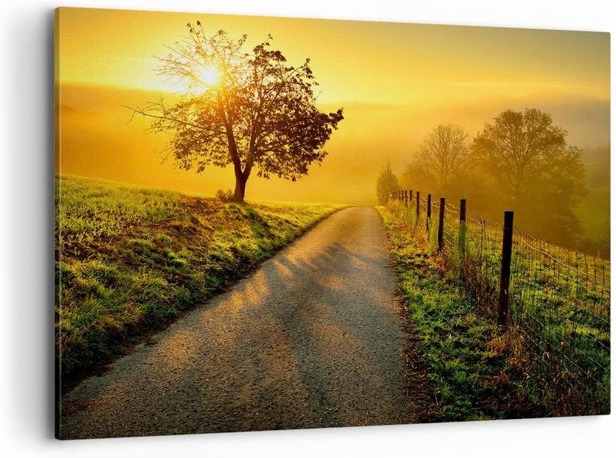 Bilder auf Leinwand 100x70cm Leinwandbild mit Rahmen Feld Strasse Baum Gross Wanddeko Bild Schlafzim