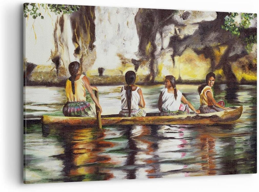 Bilder auf Leinwand 100x70cm Leinwandbild mit Rahmen Frau Wasser Boot Gross Wanddeko Bild Schlafzimm