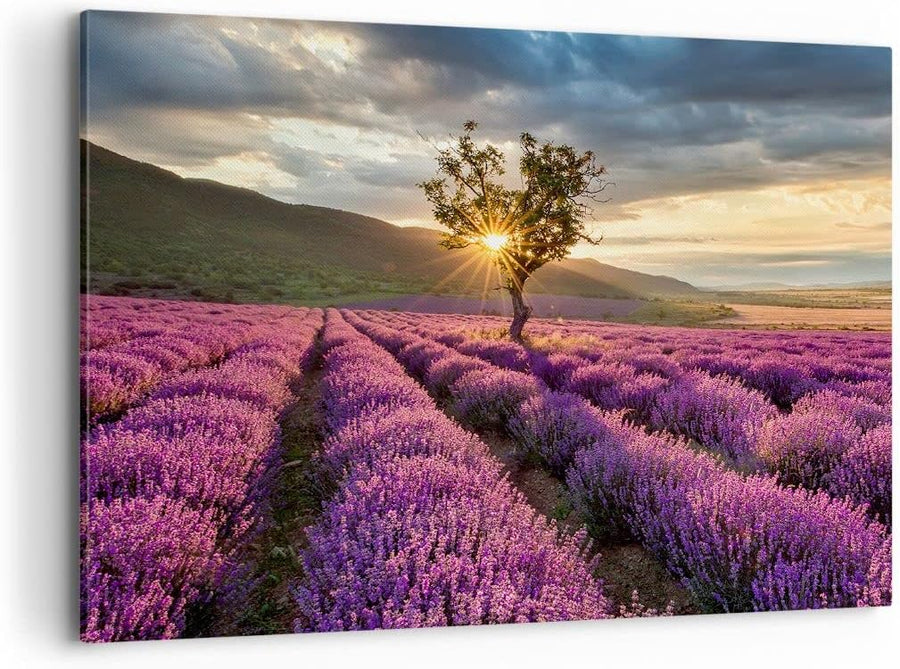 Bilder auf Leinwand 100x70cm Leinwandbild mit Rahmen Lavendel Berge Feld Gross Wanddeko Bild Schlafz