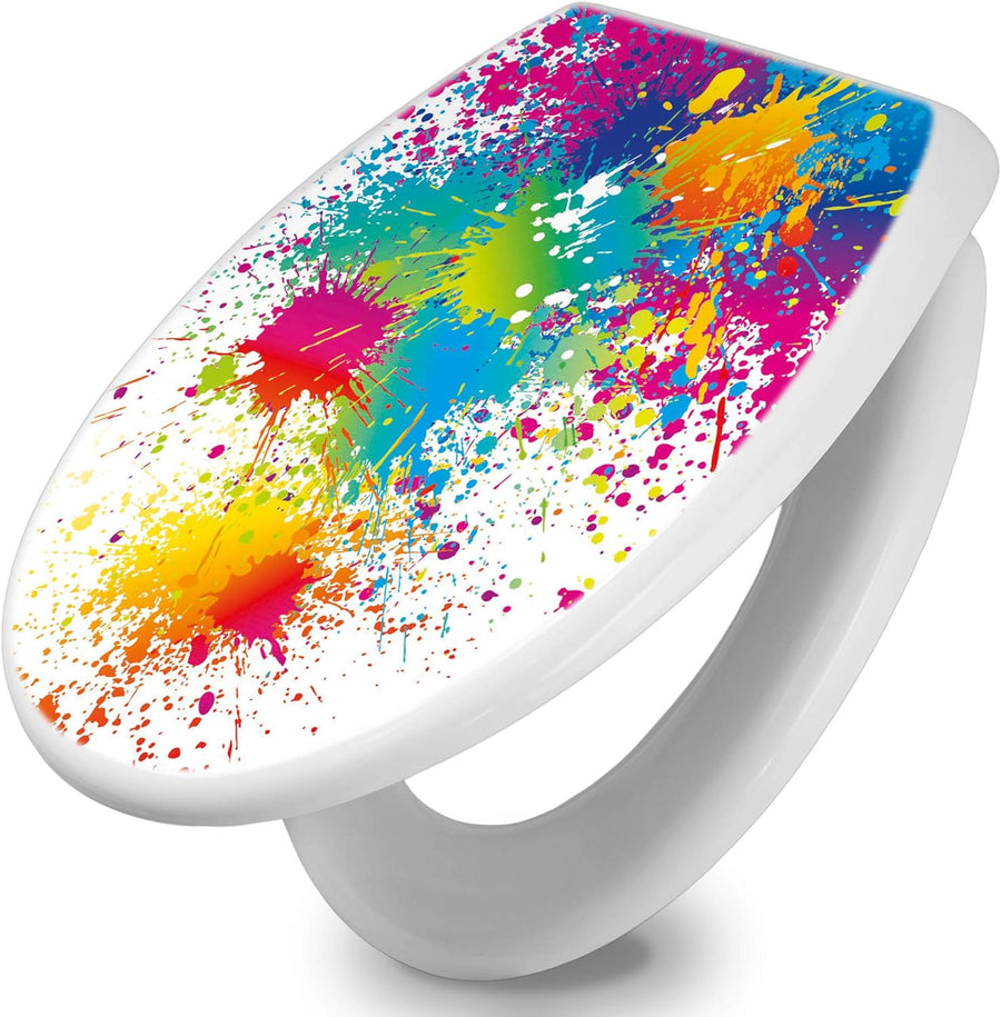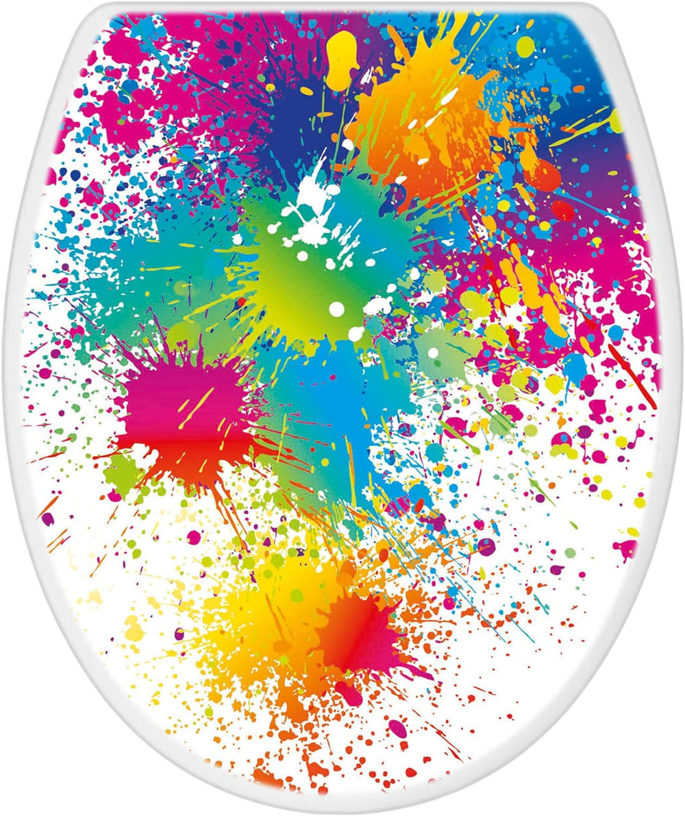 banjado® Toilettendeckel mit Absenkautomatik 44x37cm mit Motiv Farbspritzer - WC Brille Soft Close -