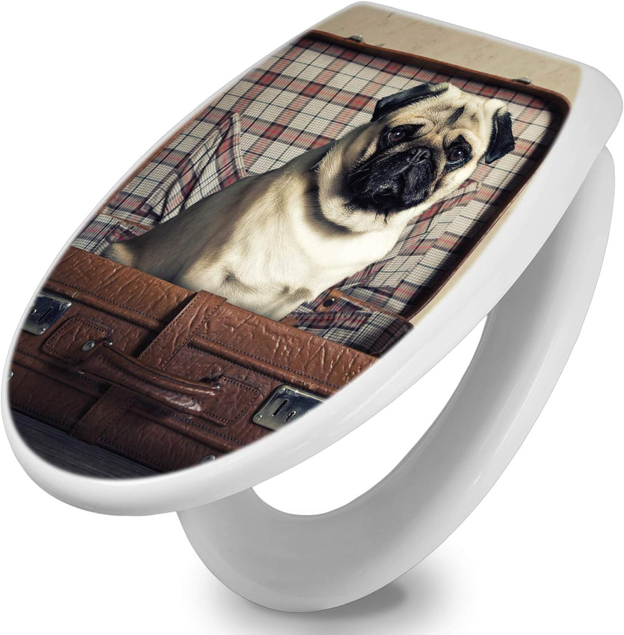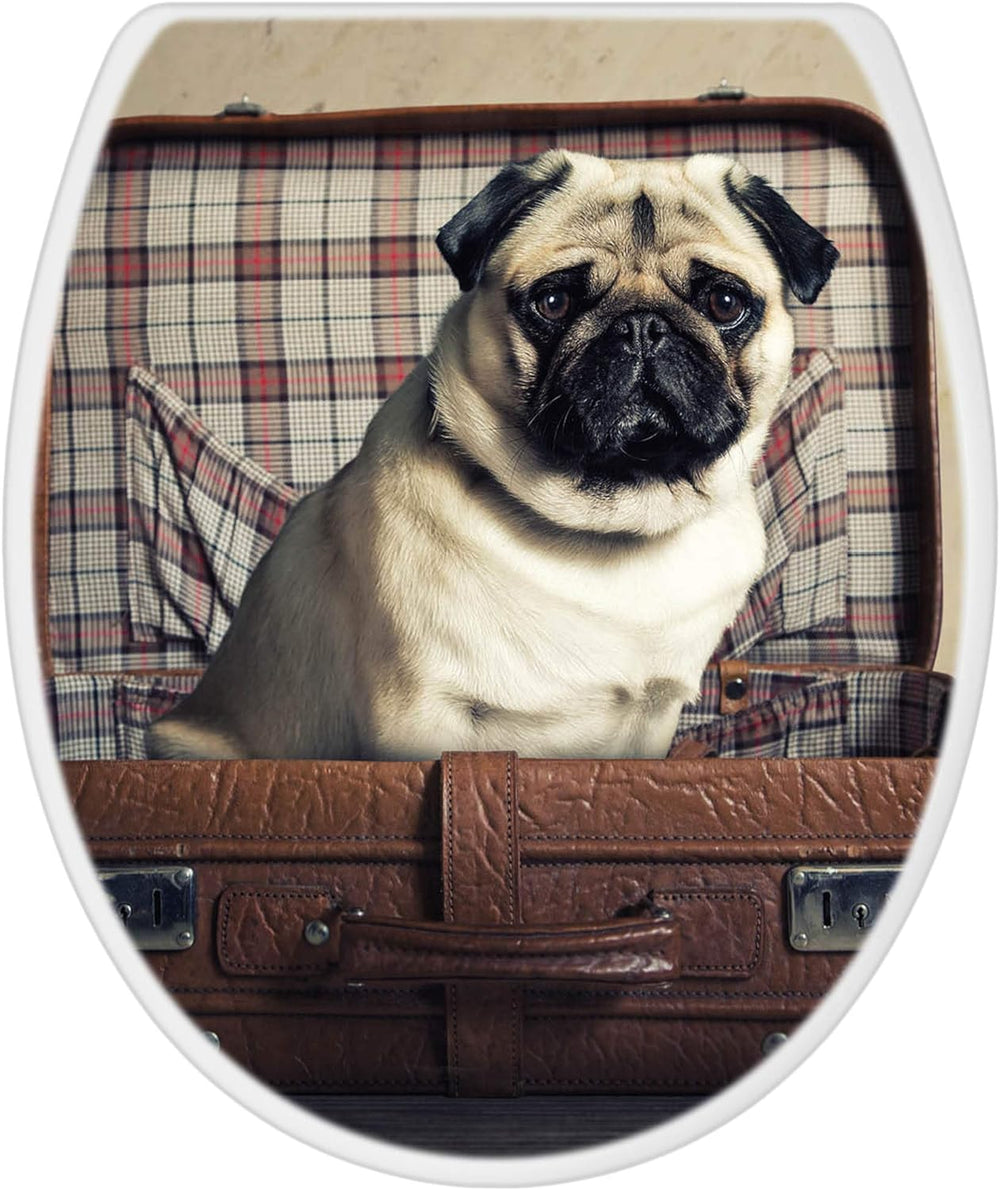 banjado® Toilettendeckel mit Absenkautomatik 44x37cm mit Motiv Mops im Koffer - WC Brille Soft Close