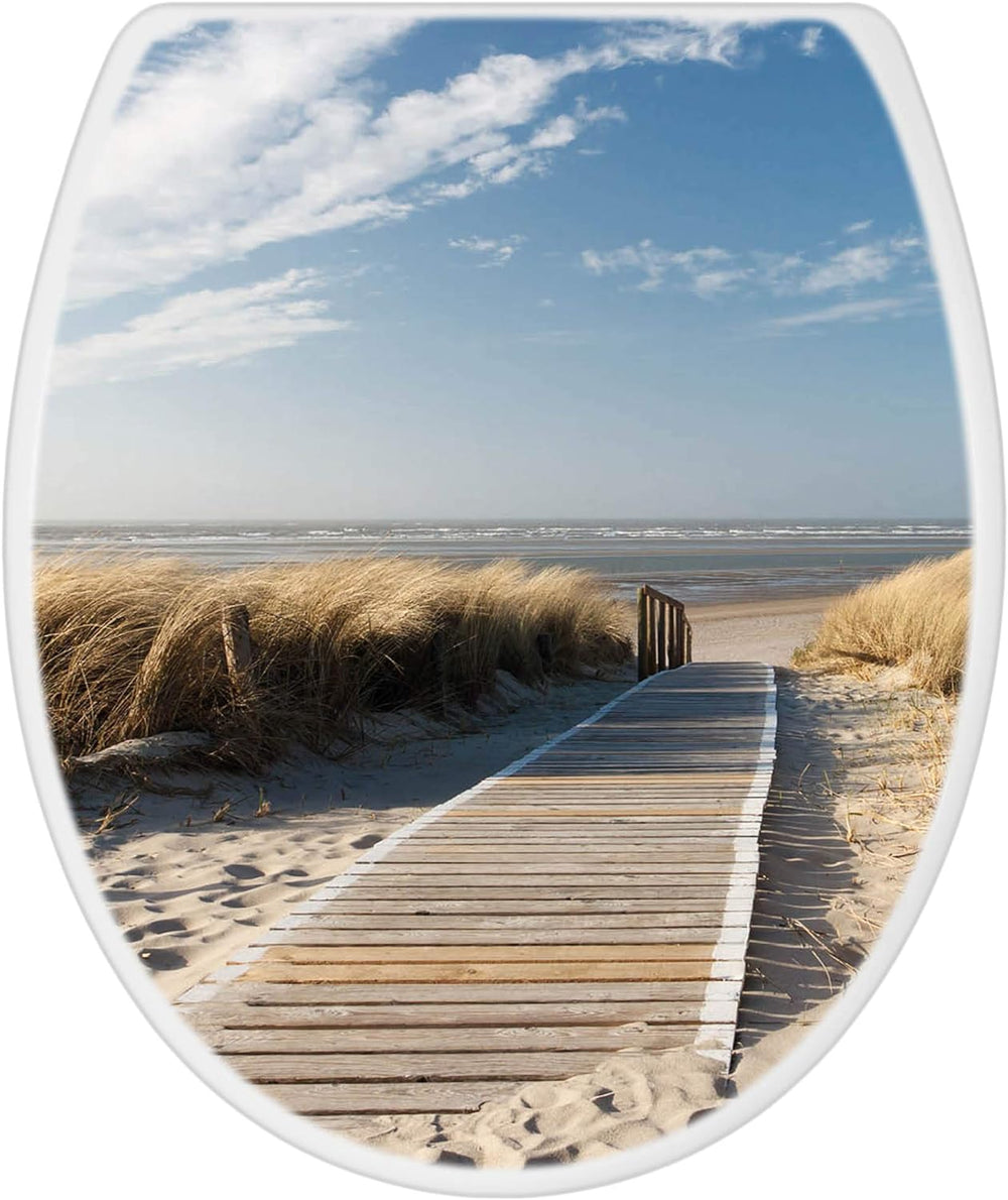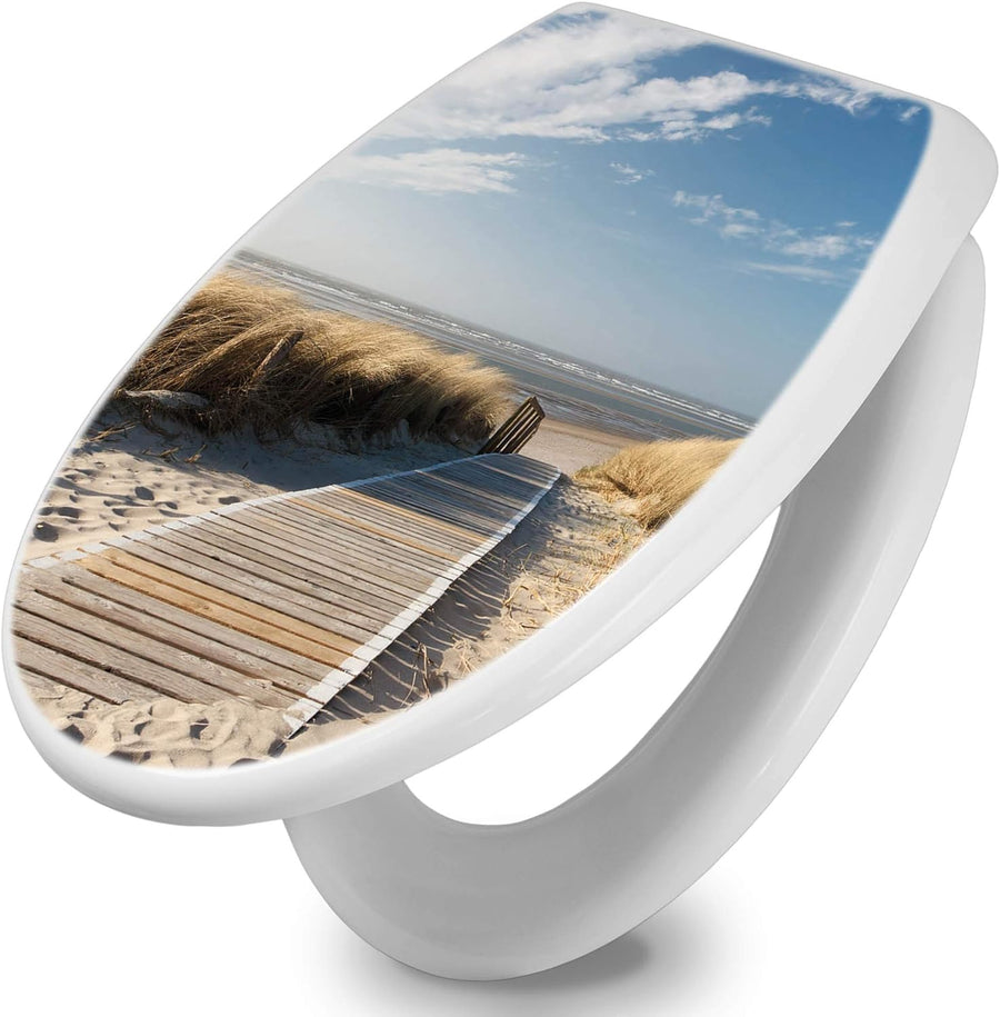 banjado® Toilettendeckel mit Absenkautomatik 44x37cm mit Motiv Dünen - WC Brille Soft Close - hygien