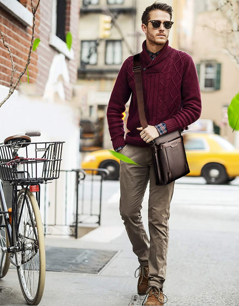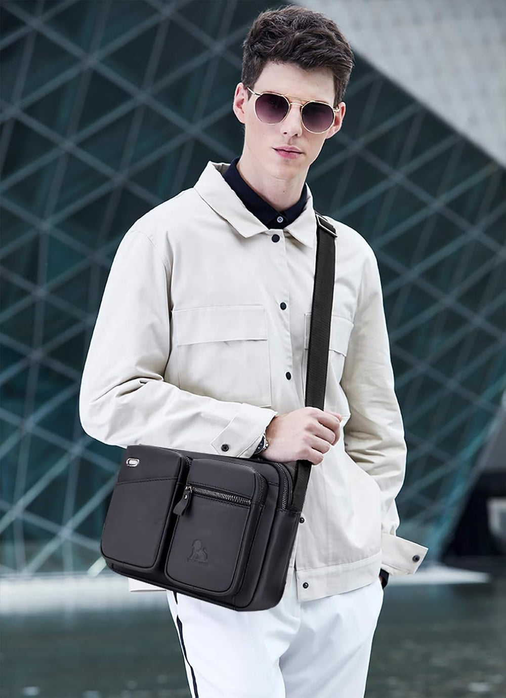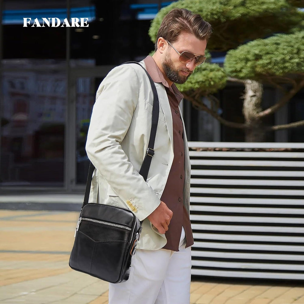 FANDARE Umhängetasche für Herren Schultertasche Leder Taschen Männer Hängetasche Herren Arbeitstasch