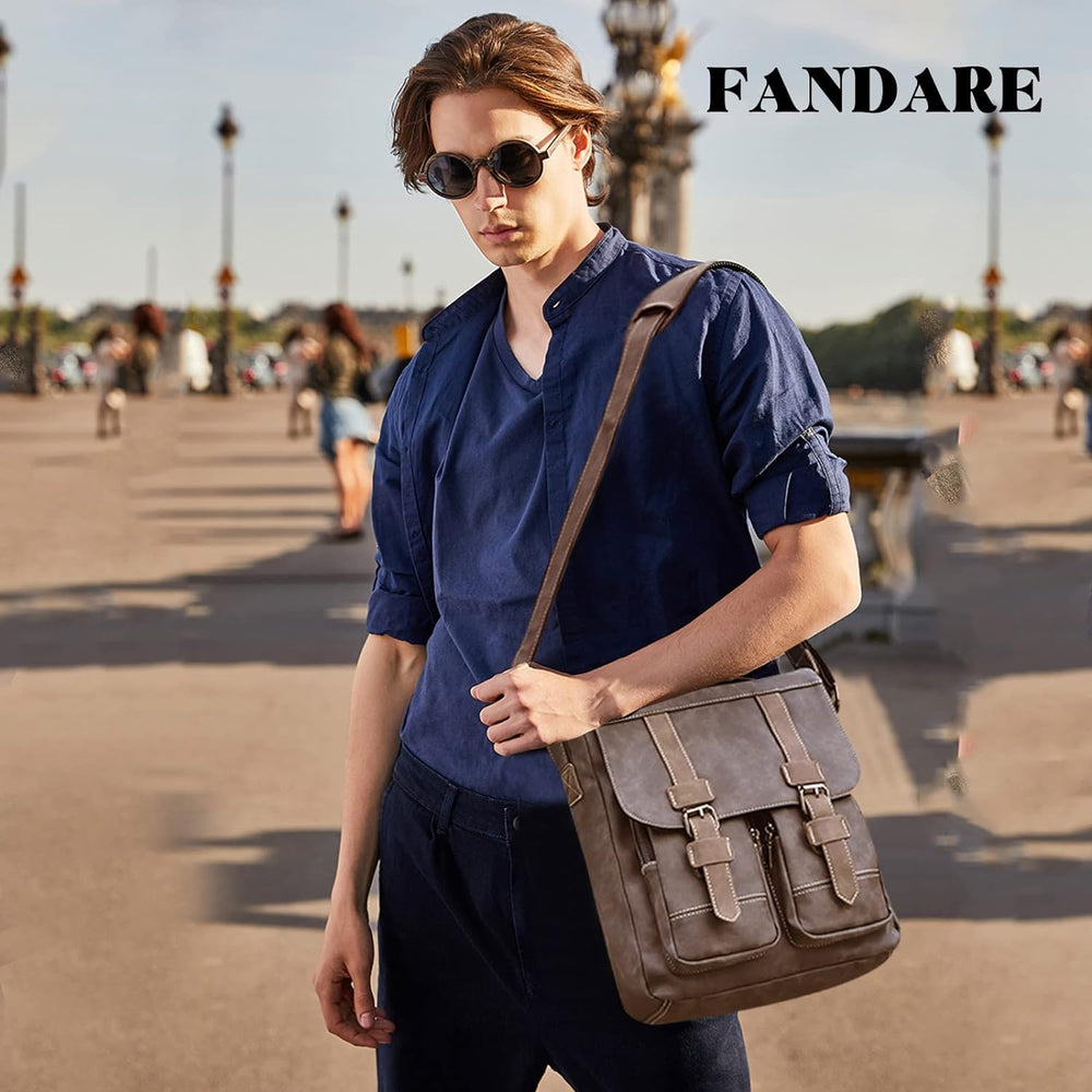 FANDARE Umhängetasche Herren Schultertasche PU Leder Männer Hängetasche Arbeitstasche Messenger Bag