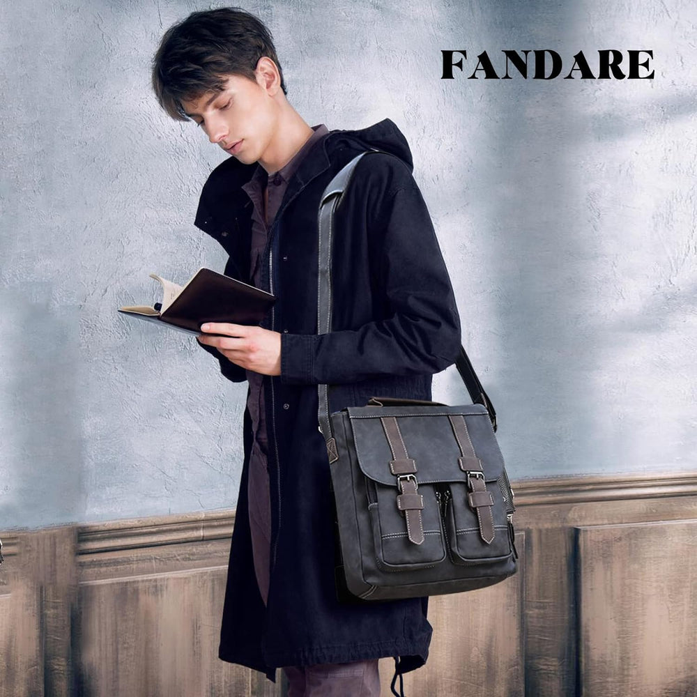 FANDARE Umhängetasche Herrentasche Segeltuch Schultertasche Lehrertasche Laptoptasche für 12.9 Zoll