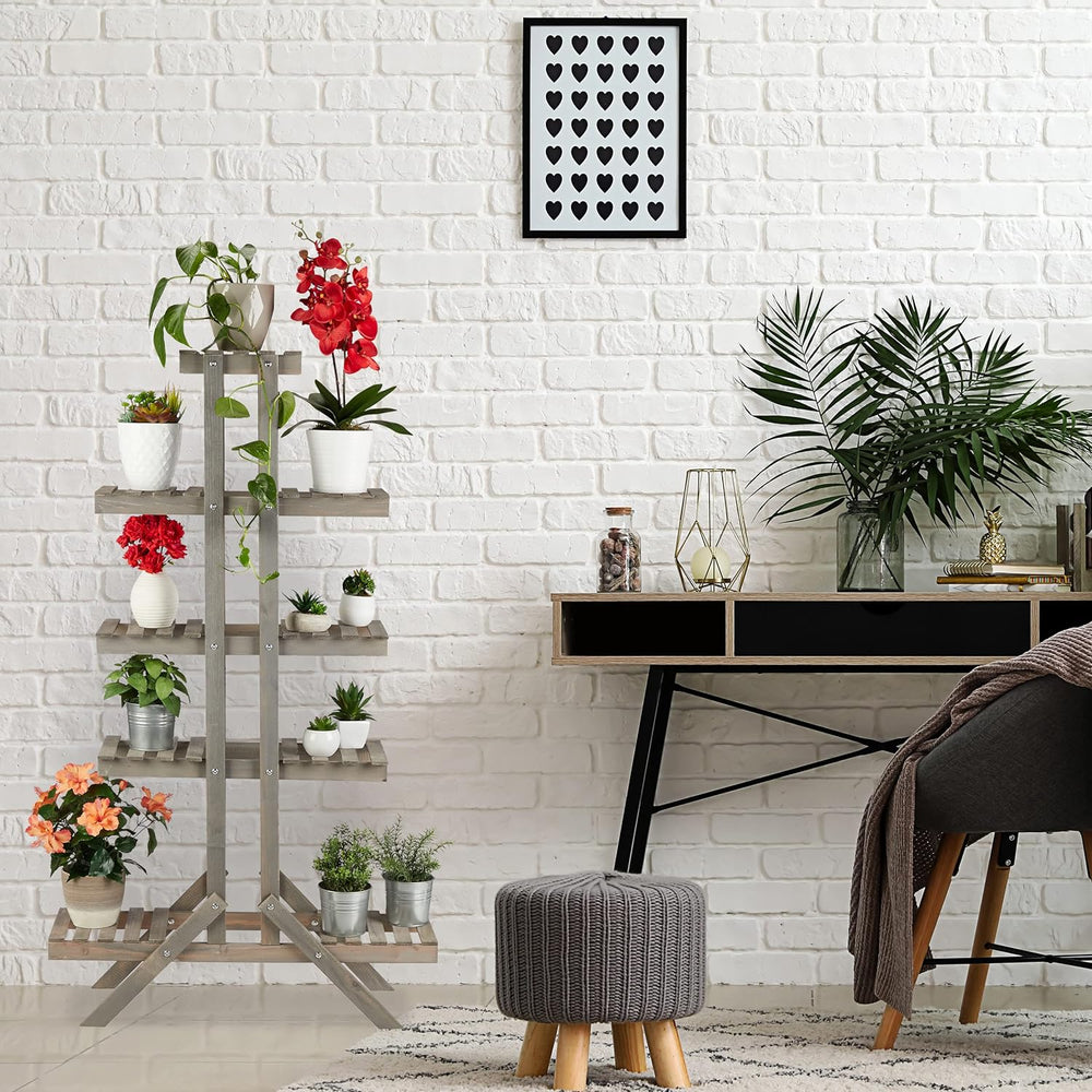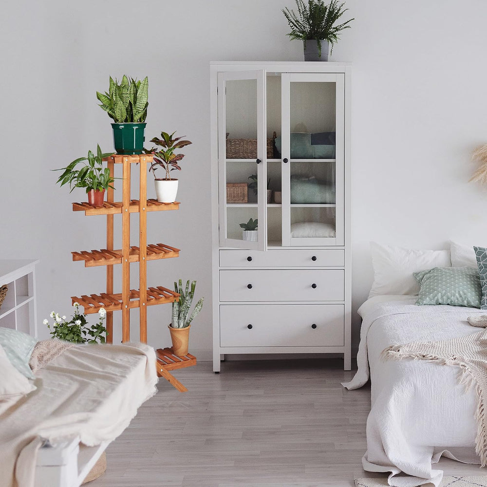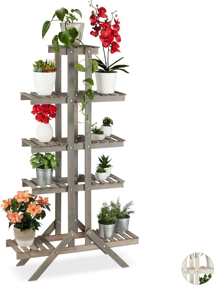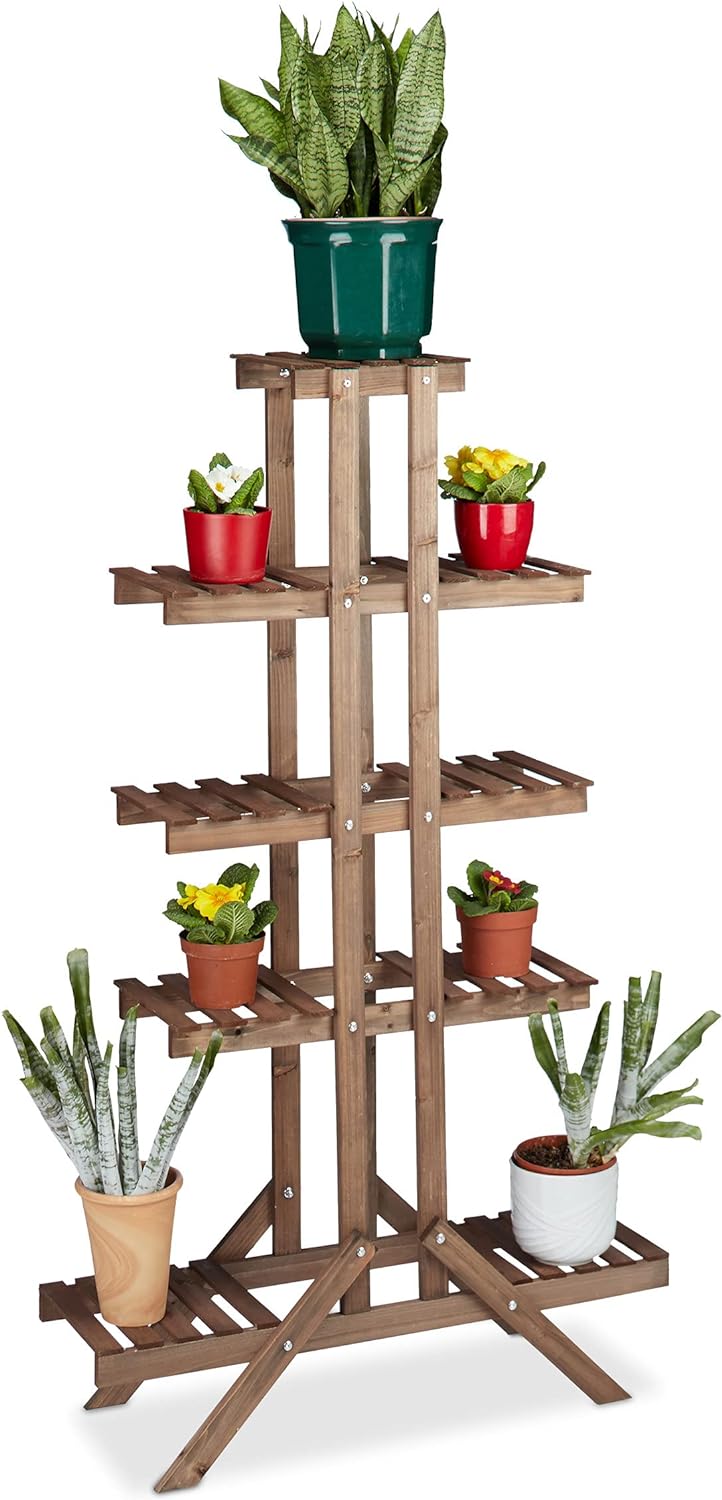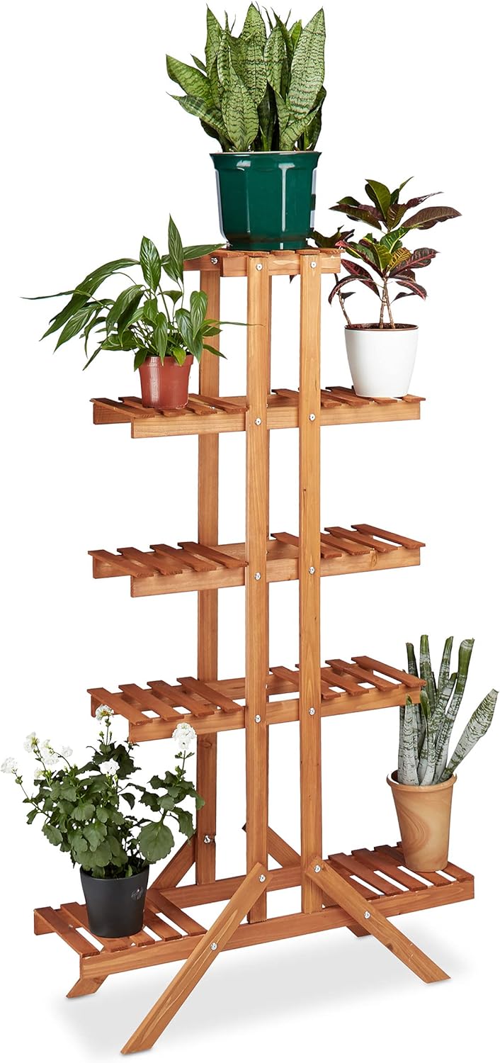 Relaxdays Blumentreppe 5 Ebenen, Aus Holz, Blumenständer für Innen, Mehrstöckig, HBT: 142,5 x 83 x 2