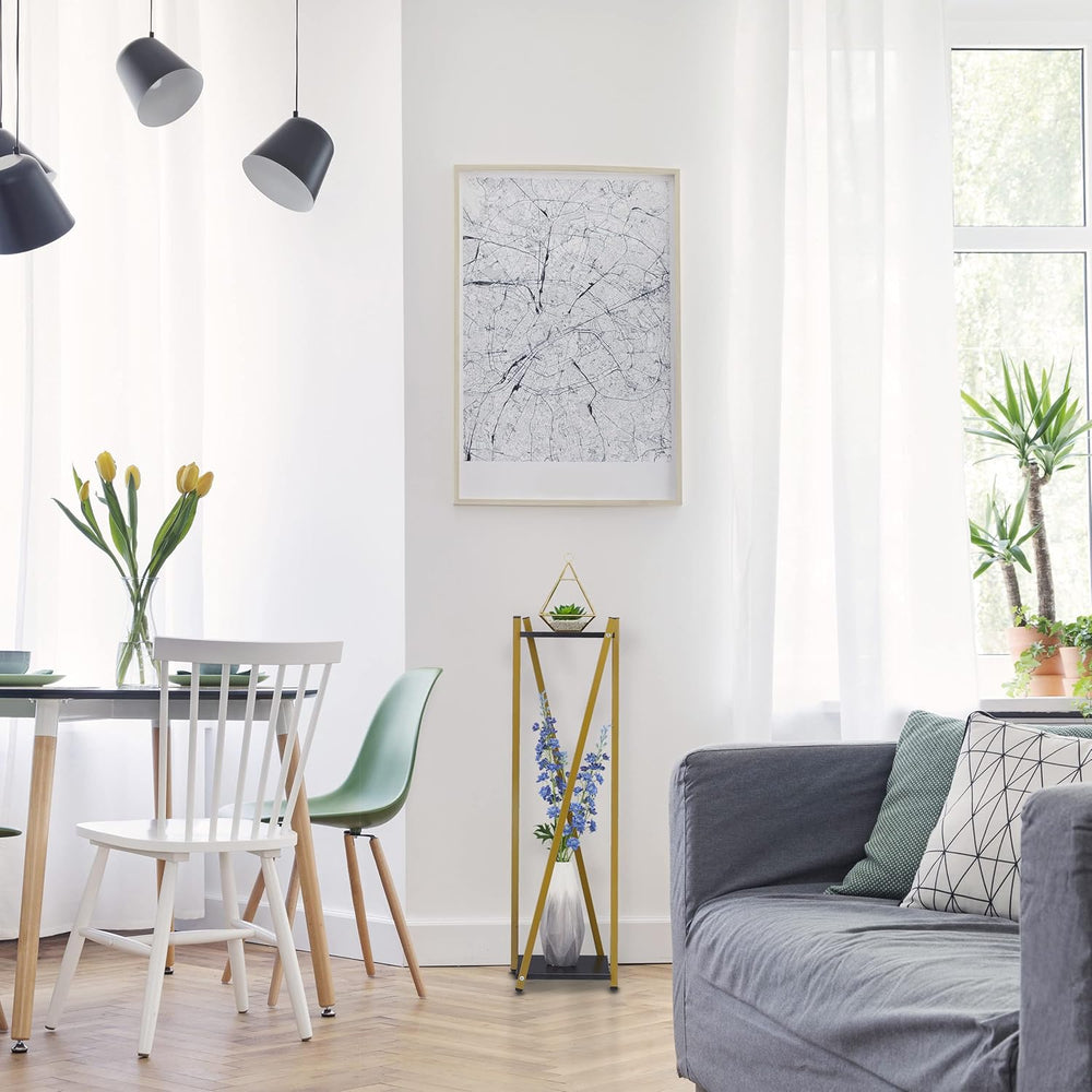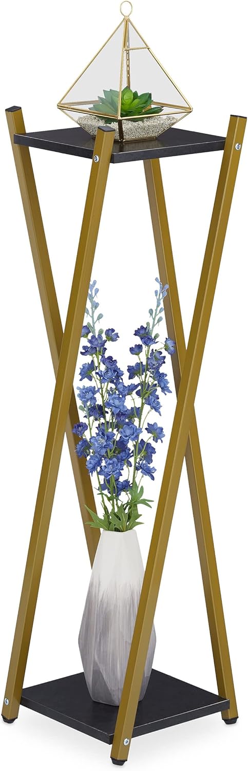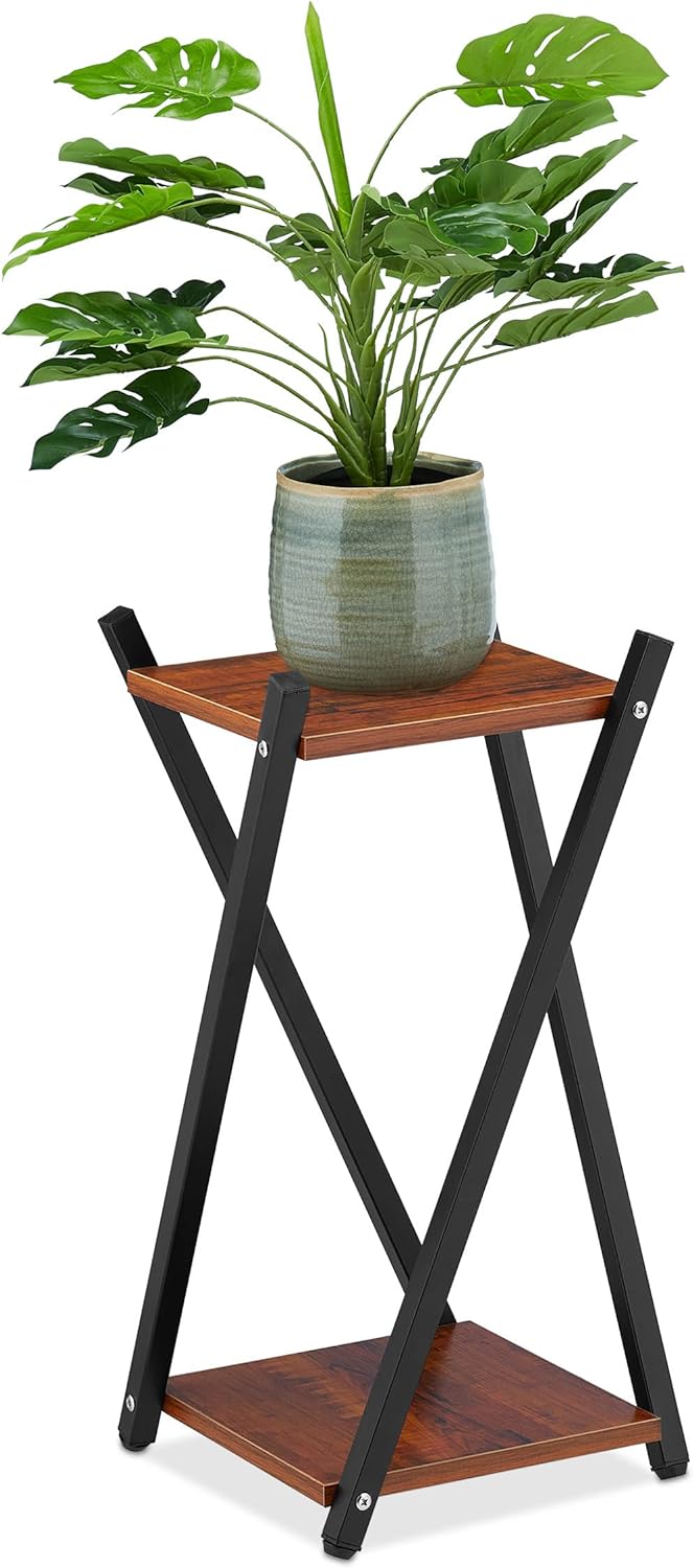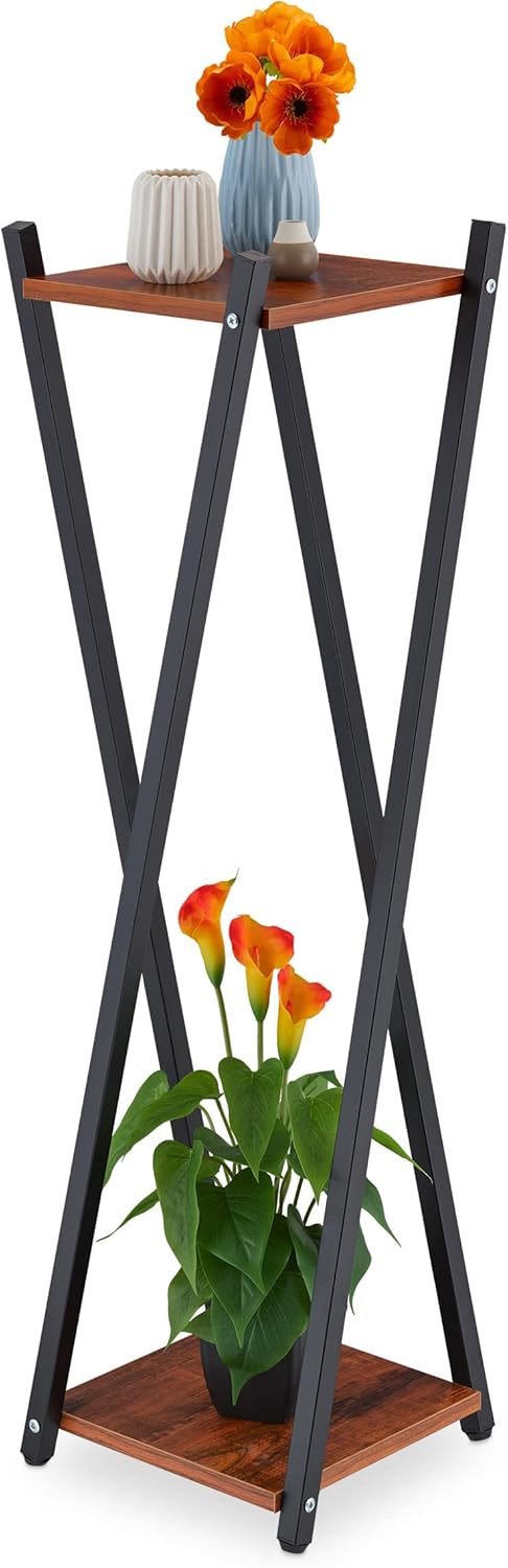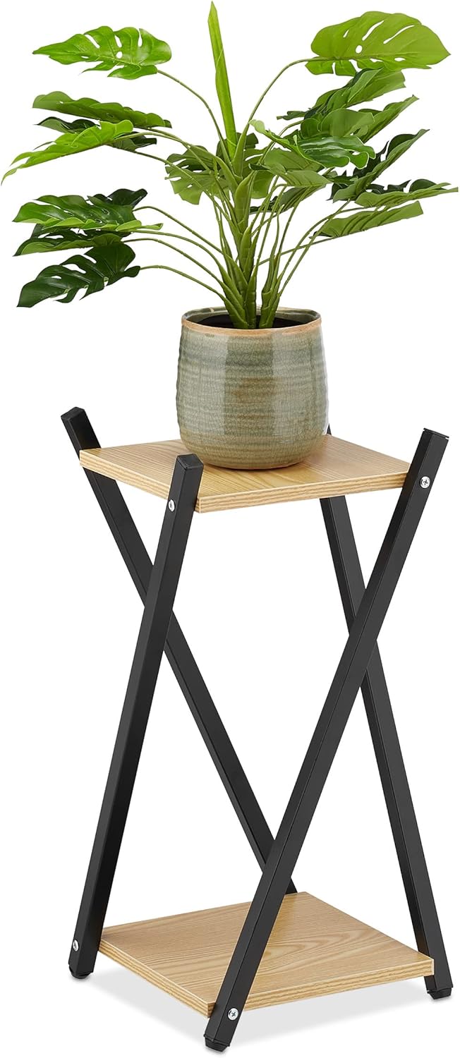 Relaxdays Blumenständer, 2 Etagen in Holzoptik, Metall, MDF, moderner Blumenhocker, 57 x 29 x 29 cm,